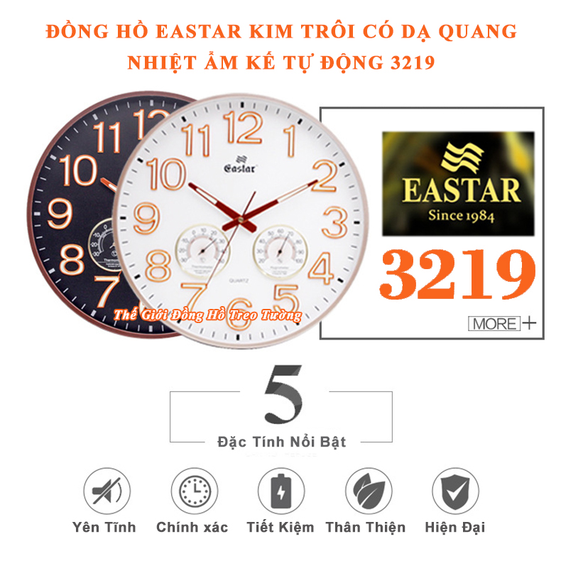 Đồng Hồ Treo Tường EASTAR Máy KIM TRÔI NHẬT có DẠ QUANG, LỊCH và NHIỆT KẾ Điện Tử
