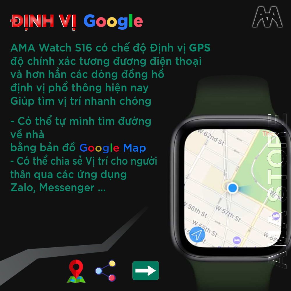 GIỚI THIỆU SẢN PHẨM Đồng hồ gắn sim Thông minh Kết nối Wifi Định vị GPS Tải ứng dụng camera trước AMA Watch S16 Ram 2G bộ nhớ 32Gb