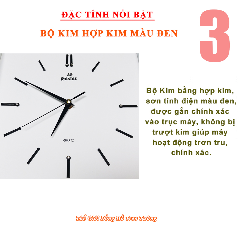 • Loại: Đồng hồ Cao cấp, Mặt kính cong, Đồng hồ Kim trôi, Đồng hồ treo tường 3D công nghệ Thạch anh (Quartz) chạy kim (Analogue), Loại máy kim trôi chạy êm ái, không phát ra tiếng tíc tắc.