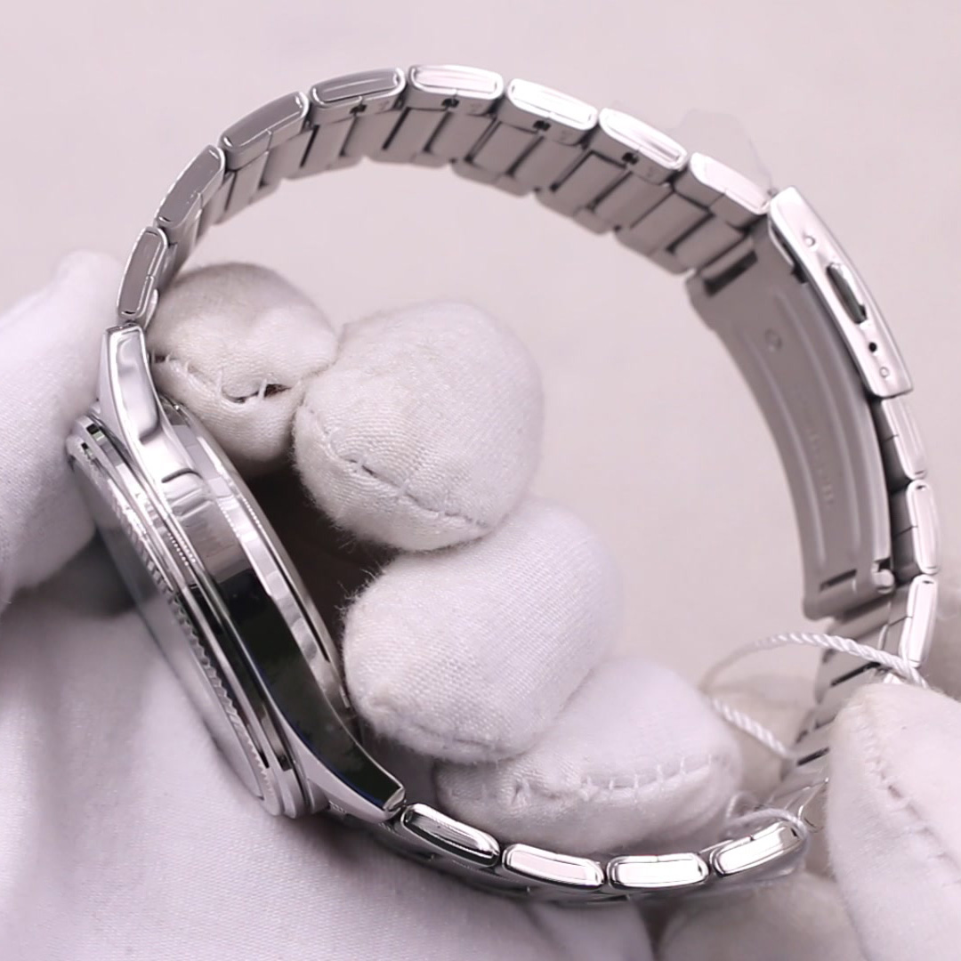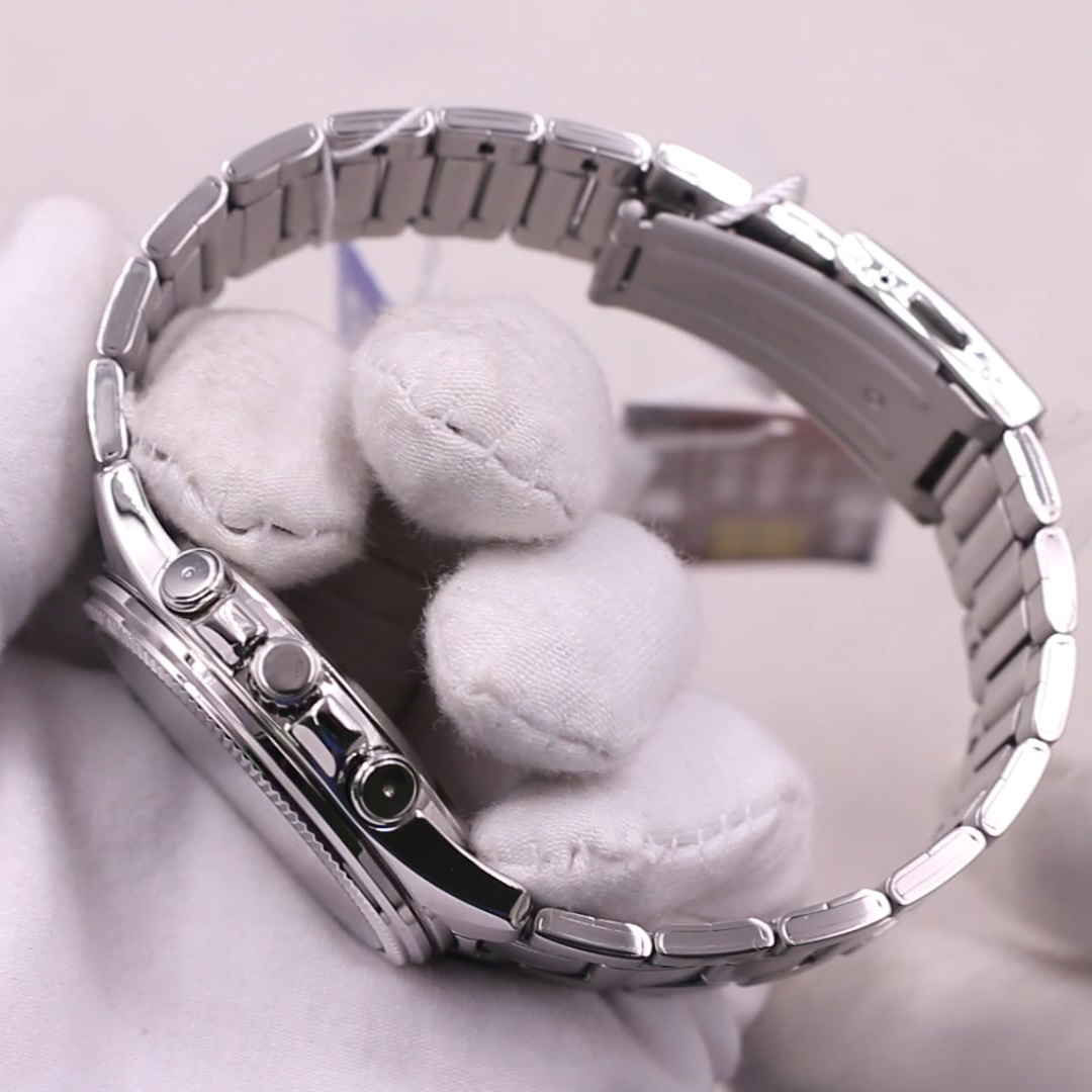 Đặc điểm kỹ thuật - - Vật liệu vỏ / gờ: Mạ ion - Chốt gập 3 chỉ với một lần bấm - Dây đeo bằng thép không gỉ - Mặt kính khoáng - Khả