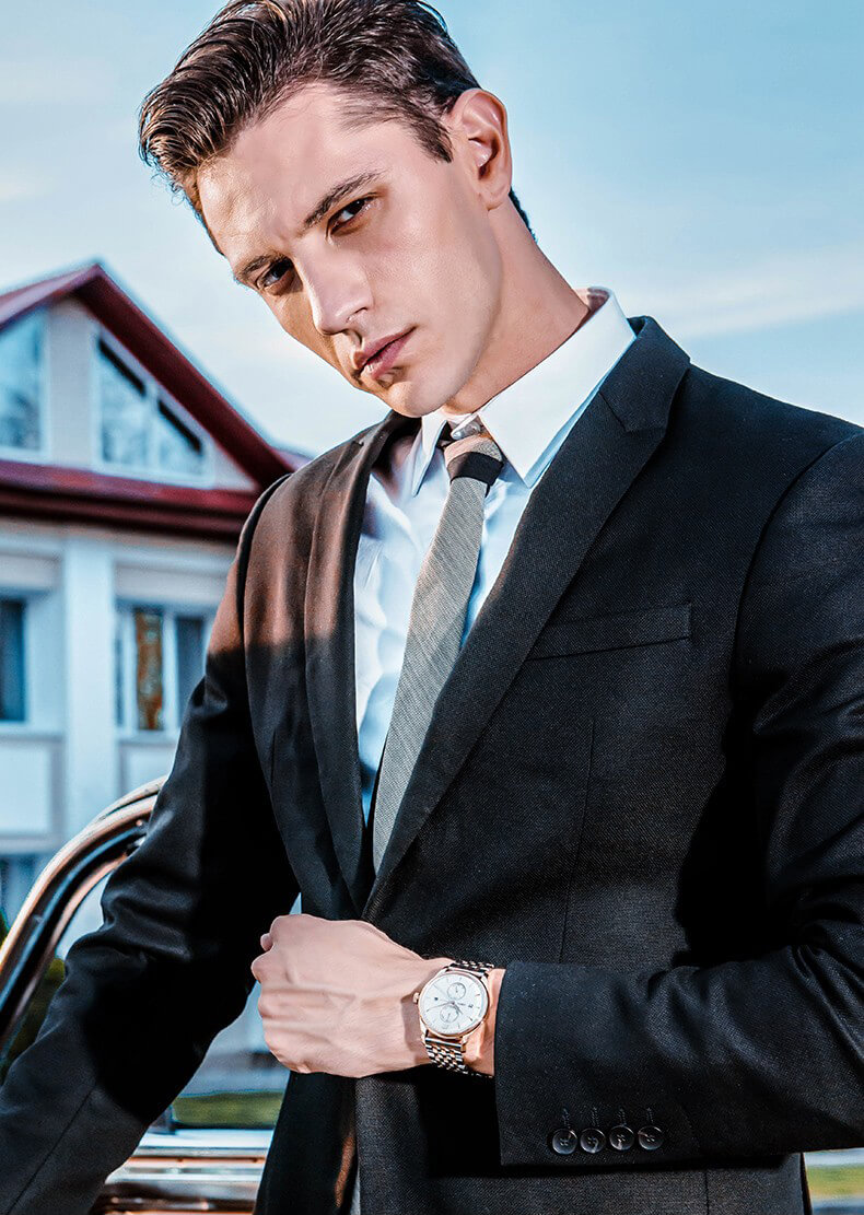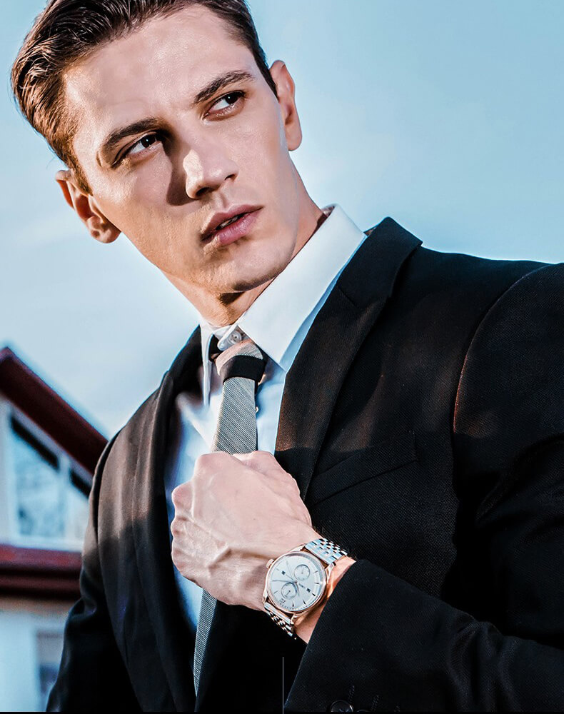 • Kiểu dáng lịch lãm dành riêng cho nam giới với 4 chức năng phụ trên mặt đồng hồ được sắp xếp đối xứng nhau cho ta cảm giác vô cùng gọn gàng mà vẫn giữ được nét sang trọng.