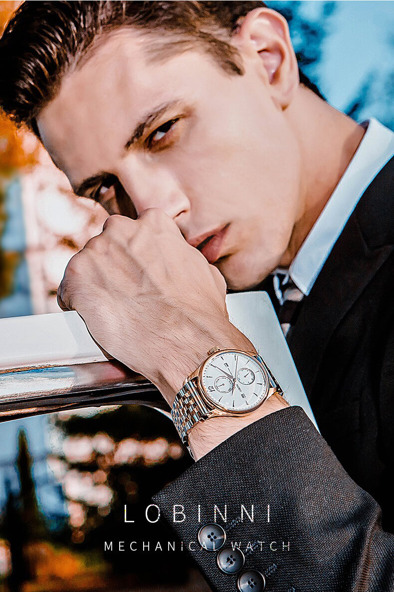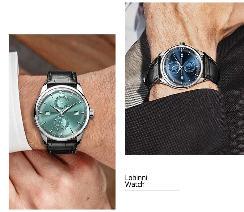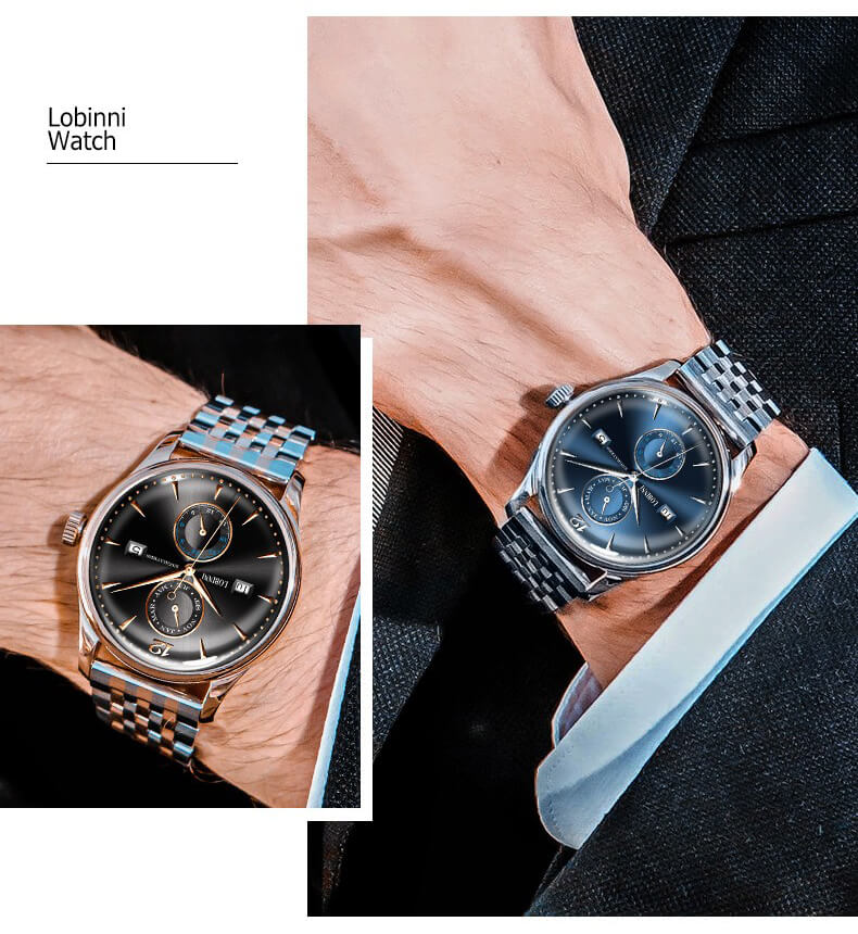 Đồng hồ nam chính hãng LOBINNI Thụy Sỹ Thiết kế sang trọng, đẳng cấp cho quý ông Thời gian trữ cót lâu lên đến 40h Chống nước 5ATM, Kính sapphire Toàn bộ máy được làm