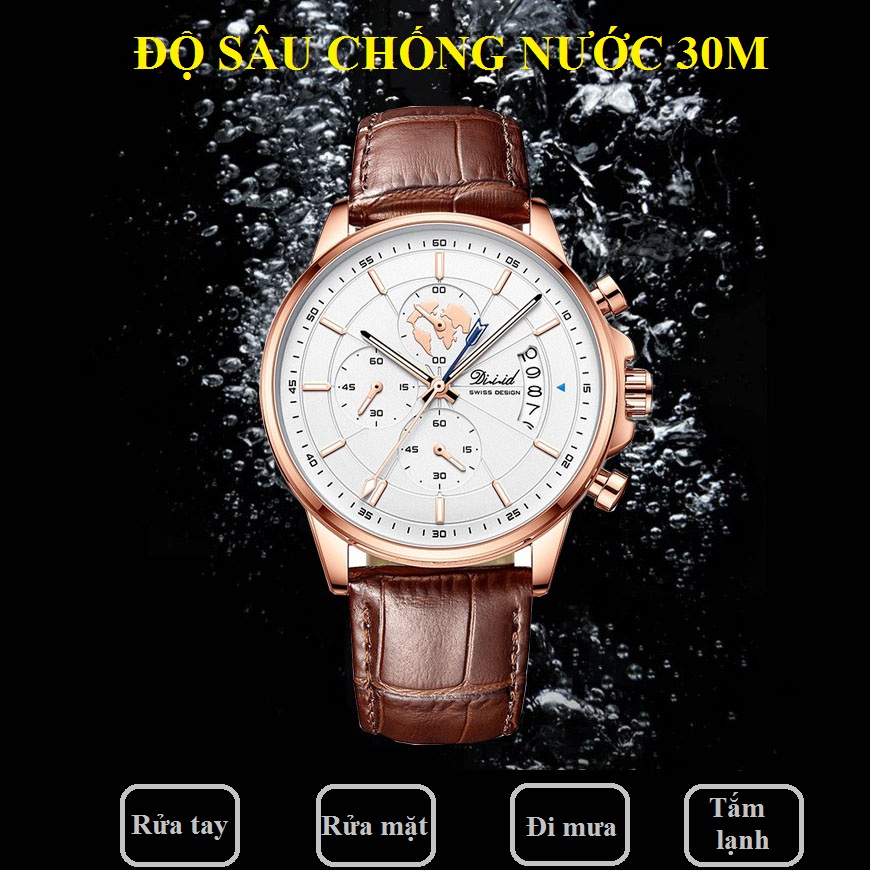 ✨Đồng hồ nam chống nước DIZIZID chính hãng dây da cao cấp - Chạy full 6 kim và lịch ngày - Chống nước tốt - Kim dạ quang - Tặng kèm pin dự phòng DZDT69