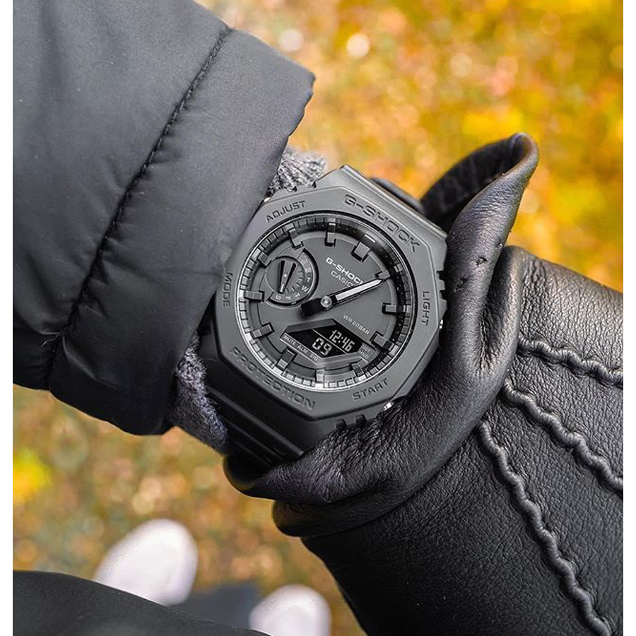 Chất liệu nhựa vô cùng mạnh mẽ còn được gia cố sợi cacbon giúp tạo nên lớp vỏ chỉ dày 11,8 mm. Đây là lớp vỏ mỏng nhất trong số các mẫu kết hợp của G-SHOCK.