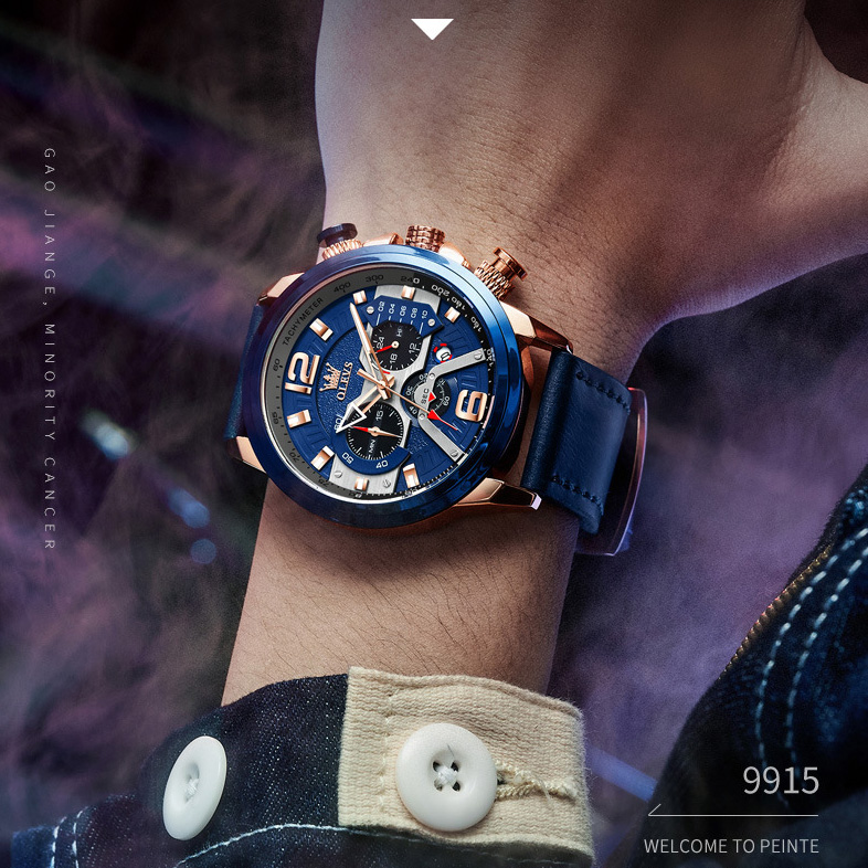 ✨Đồng Hồ Nam Olevs 9915 Mạ Vàng Phong Cách Sang Trọng, Chạy Đủ 6 Kim, Dây Da, Có Dạ Quang và Lịch Ngày - Hàng Chính Hãng