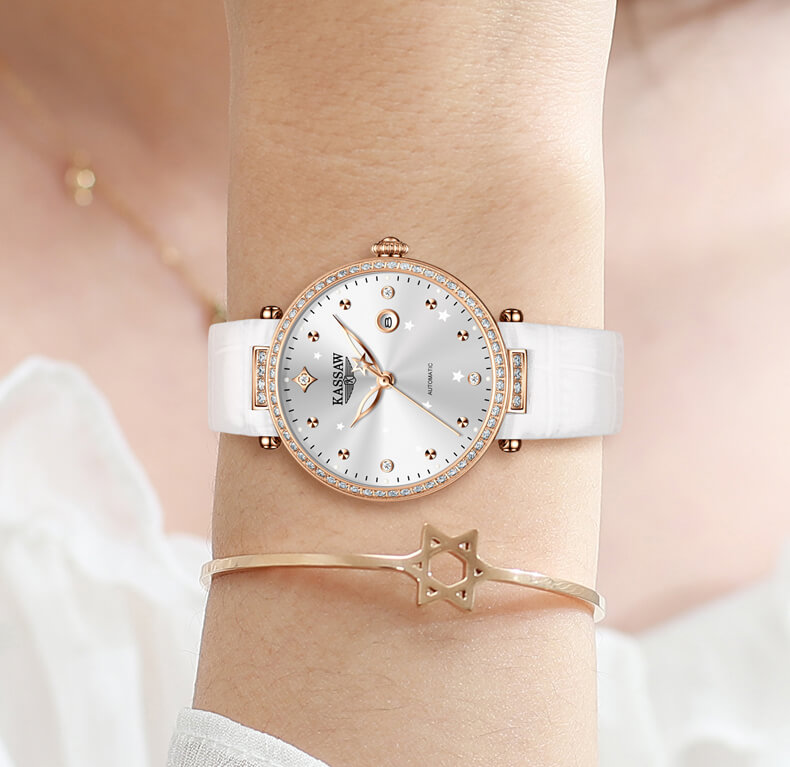 Đồng hồ nữ chính hãng kassaw Thụy Sỹ Thiết kế hiện đại,sang trọng dành cho phái nữ Thời gian trữ cót lâu lên đến hơn 40h Chống nước 5ATM, Kính sapphire Toàn bộ máy được