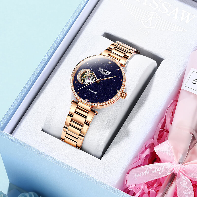 Đồng hồ nữ chính hãng Kassaw Thụy Sỹ Thiết kế hiện đại,sang trọng dành cho phái nữ Thời gian trữ cót lâu lên đến 40h Chống nước 5ATM, Kính sapphire Toàn bộ máy được làm