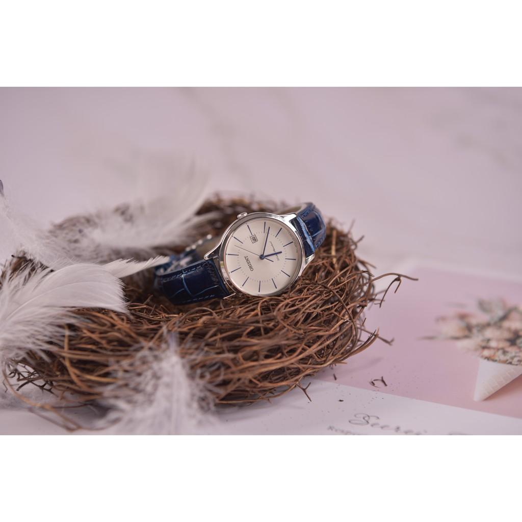 Thuộc dòng sản phẩm Orient, RF-QA0006S10B là một trong những mẫu đồng hồ nữ được yêu thích nhất của hãng đồng hồ xứ sở mặt trời mọc. Với ngoại hình vừa đơn giản vừa lịch sự, cỗ máy của Orient thực sự thu hút mọi sự chú ý ngay từ cái nhìn đầu tiên. RF-QA0006S10B sở hữu mặt số 30mm màu trắng thanh lịch. Bộ kim đầu vuông màu xanh ton-sur-ton với cọc số dạng vạch và dây da tạo nên một thiết kế trẻ trung và hiện đại. RF-QA0006S10B được Orient trang bị bộ máy điện tử 321, kính cứng chịu lực cùng độ chịu nước 30m.