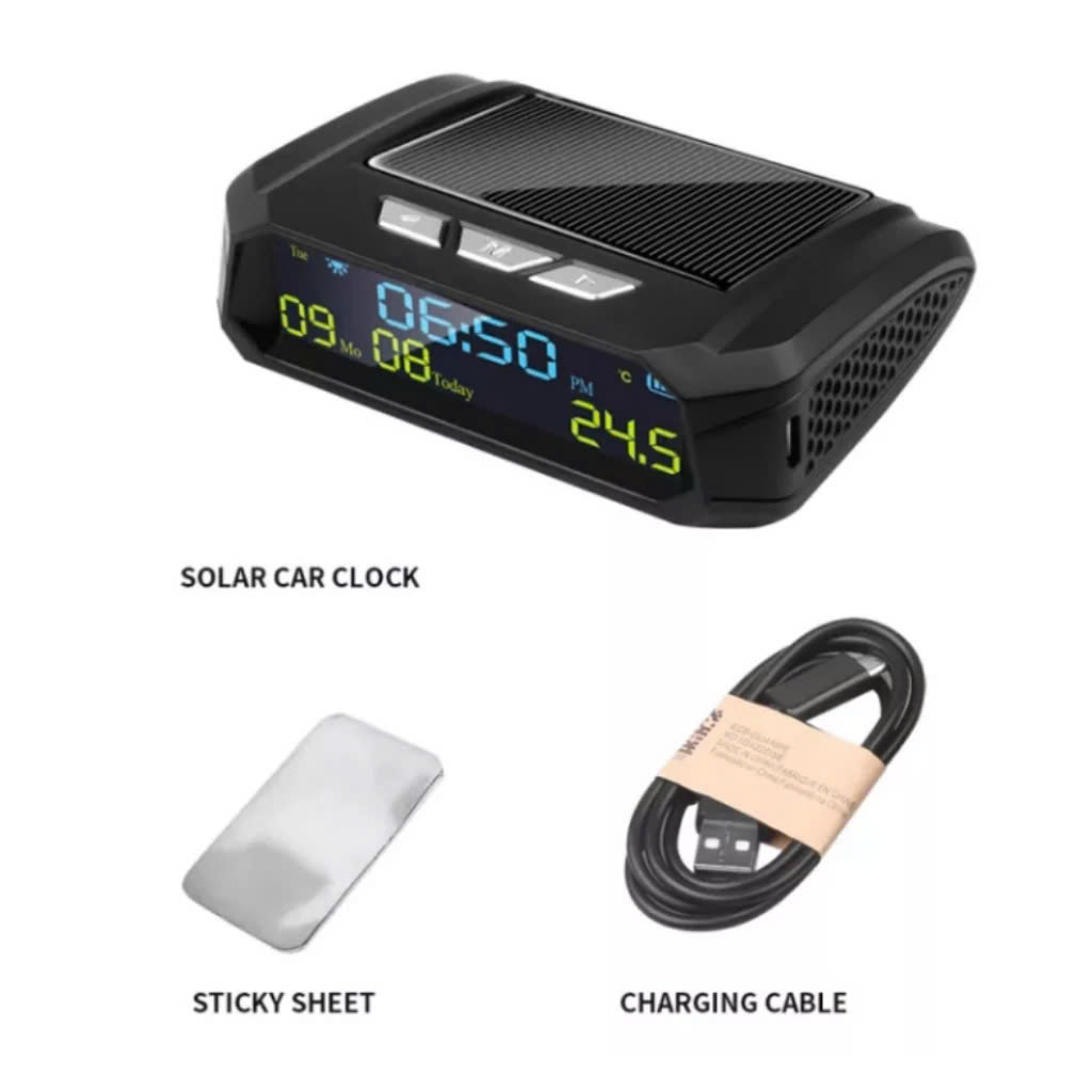 Đồng Hồ Gắn Ô Tô 3in1 Năng Lượng Mặt Trời Mẫu Mới: Báo Giờ, Ngày Tháng, Nhiệt Độ – Màn Hình LED Đa Năng Cực Tiện