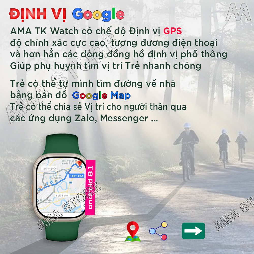Đồng hồ Thông minh AMA Smart watch TK Plus Android 8.1 Camera xoay 180 Lắp Sim Định vị GPS Google kết nối Wifi 4G Blueltooth xem được Video Youtube TikTok tải App FB Messenger Skype Viber Wechat Line Tele chơi Game cho Trẻ em Người lớn AMA WATCH TK PLUS CHÍNH HÃNG Tư vấn Sản phẩm: ⓿❾❽❻❽❹❽❺❾❾ Trong thế giới ngày càng phụ thuộc vào công nghệ, sự hòa quyện giữa thiết kế thời trang và khả năng đa dạng của một chiếc đồng hồ thông minh đã trở thành xu hướng không thể thiếu. Đồng hồ thông minh AMA WATCH TK PLUS đã xuất hiện như một người bạn đồng hành đáng tin cậy, kết hợp tinh tế giữa tính năng và thẩm mỹ. Hãy cùng khám phá những điểm nổi bật của chiếc đồng hồ này. Hệ Điều Hành Android - Trí Tuệ Vượt Trội AMA WATCH TK PLUS được trang bị hệ điều hành Android mạnh mẽ, giúp bạn trải nghiệm một loạt các ứng dụng và tính năng thông minh. Với hệ điều hành này, bạn có thể dễ dàng truy cập vào kho ứng dụng Goo.gle Play Store để tải xuống và cài đặt các ứng dụng yêu thích của mình. Liên Lạc Mọi Lúc Mọi Nơi Với khả năng gắn SIM độc lập, AMA WATCH TK PLUS cho phép bạn thực hiện cuộc gọi thoại và gửi tin nhắn SMS ngay trên đồng hồ mà không cần phụ thuộc vào điện thoại di động. Bạn cũng có thể sử dụng các ứng dụng liên lạc phổ biến như Za.lo, Messen.ger để giữ liên lạc với gia đình và bạn bè. Kết Nối Đa Dạng AMA WATCH TK PLUS không chỉ hỗ trợ mạng Wifi và Bluetooth, mà còn có khả năng kết nối 4G, cho phép bạn truy cập internet nhanh chóng và mượt mà. Điều này giúp bạn luôn kết nối với thế giới trực tuyến, truy cập các ứng dụng, xem video và tham gia mạng xã hội. Camera xoay 180 Linh hoạt trong việc chụp ảnh và quay video: Với khả năng xoay 180 độ, người dùng có thể dễ dàng điều chỉnh góc camera để chụp ảnh hoặc thực hiện cuộc gọi video mà không cần xoay cổ tay. Theo Dõi Sức Khỏe và Giải Trí AMA WATCH TK PLUS cũng là một trợ thủ đắc lực trong việc theo dõi sức khỏe cá nhân. Nó có thể đo nhịp tim, đếm số bước đi hàng ngày và cung cấp thông tin về sức khỏe của bạn. Ngoài ra, chiếc đồng hồ này cũng cho phép bạn thưởng thức giải trí với các ứng dụng xem video như You.Tube và Tik.Tok, cũng như chơi các loại game yêu thích. Đồng Bộ Dữ Liệu Với AMA WATCH TK PLUS, bạn có thể truy cập các mạng xã hội như Face book và Insta gram một cách thuận tiện. Đồng thời, việc đồng bộ dữ liệu thông qua tài khoản Goo.gle giúp bạn quản lý dữ liệu cá nhân, lưu trữ tài liệu trên Goo.gle Drive và sử dụng các dịch vụ của Goo.gle như G.mail và Goo.gle Photos một cách dễ dàng. Chất Lượng Và Tốc Độ Vượt Trội AMA WATCH TK PLUS mang đến trải nghiệm vô cùng ấn tượng với hàng chất lượng, tốc độ xử lý nhanh chóng và giao diện đẹp mắt. Bạn cũng có tự do tùy chỉnh hình nền theo sở thích cá nhân, biến chiếc đồng hồ thành một phần không thể thiếu của phong cách thời trang của bạn. Đinh Vị Với Độ Chính Xác Cao Nhất Đồng hồ có chức năng Định vị GPS với độ chính xác tương đương với điện thoại, Đồng hồ có thể phân biệt được Bạn đã di chuyển bằng phương tiện gì, đã dừng chân ở quán ăn, quán game, nhà nghỉ, khách sạn nào...Bạn có thể biết được thời gian dừng chân ở địa điểm đó là bao lâu, rời đi vào lúc nào. Đồng hồ có thể lưu nhật ký 180 ngày thay vì 90 ngày như các dòng định vị phổ thông. Chức năng này cực kỳ hữu ích dành cho Cha mẹ khi mua sản phẩm này cho con cái đang ở lứa tuổi học sinh, sinh viên. Quản Lý Đồng Hồ (Ứng dụng chỉ dành cho Cha mẹ) AMA WATCH TK PLUS là dòng đồ hồ Cao cấp với rất nhiều chức năng. Nếu Phụ huynh mua cho con thì có thể Quản lý đồng hồ từ xa, Phụ huynh có thể quản lý thời gian xem video, thậm chí có thể khóa ứng dụng không cho sử dụng. Phụ huynh có thể khóa, hạn chế tải ứng dụng. Mọi hoạt động của Trẻ đều phải được sự đồng ý của cha mẹ qua ứng dụng quản lý. Phù Hợp AMA WATCH TK PLUS là sản phẩm phù hợp với tất cả Mọi người (Học sinh, Sinh viên, Công nhân, Nhân viên Văn phòng, Doanh nhân...) LỜI KẾT AMA WATCH TK PLUS  không chỉ là một chiếc đồng hồ thông minh mà còn là một người bạn đồng hành đáng tin cậy trong cuộc sống hàng ngày. Với HĐH Android, khả năng gắn SIM độc lập, kết nối đa dạng, chăm sóc sức khỏe và khả năng giải trí, chiếc đồng hồ này chắc chắn sẽ đem lại sự tiện ích và phong cách cho người dùng hiện đại. AMA TK WATCH thật sự là sự hòa quyện hoàn hảo giữa công nghệ và thời trang. Thị Trường Trên thị trường có nhiều loại đồng hồ tương tự, kiểu dáng khá giống với AMA WATCH TK PLUS. Khách mua hàng cần cân nhắc lựa chọn giữa sản phẩm Thương hiệu chất lượng và sản phẩm giá rẻ. Chúng tôi là AMA, chuyên cung cấp các sản phẩm có Chất lượng cao, Bảo hành đúng thời hạn quy định và Hỗ trợ khách hàng tận tâm! Hãy liên hệ với chúng tôi để đội ngũ nhân