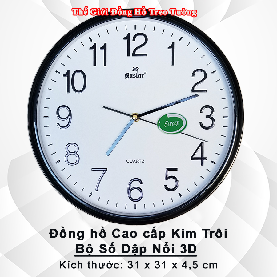✨Đồng Hồ Treo Tường Cao Cấp KIM TRÔI EASTAR – Số Nổi 3D – Tặng Pin MAXELL – BH 1 Năm