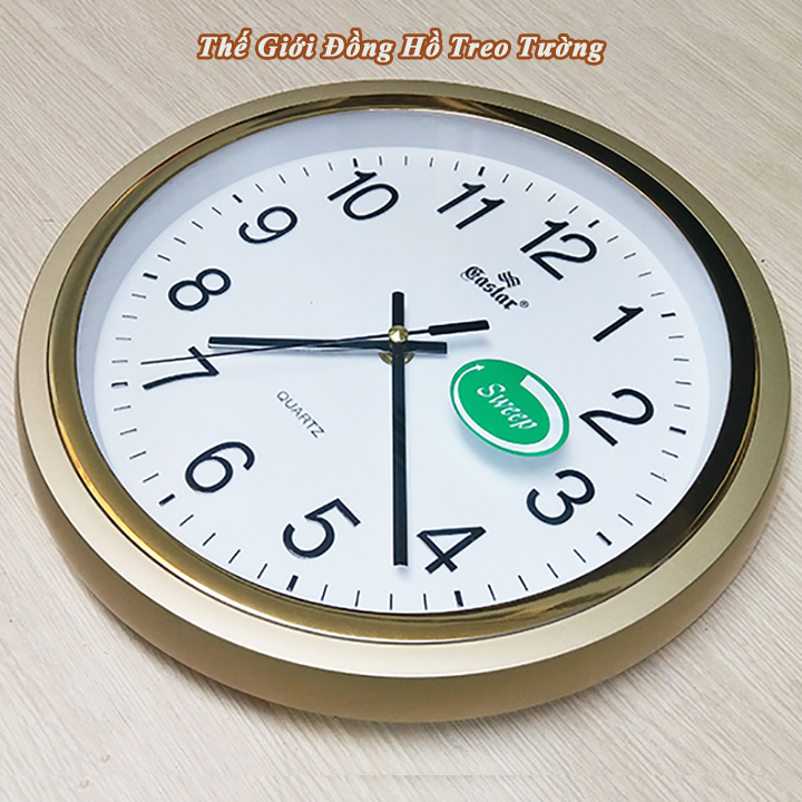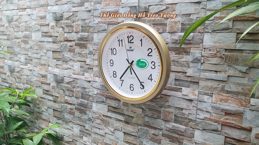 ✨Đồng Hồ Treo Tường KIM TRÔI EASTAR Cao Cấp - Mặt Tròn Viền Vàng Kim Tuyến - Mặt số in Nổi 3D - Máy Kim trôi – Tặng Pin Maxell