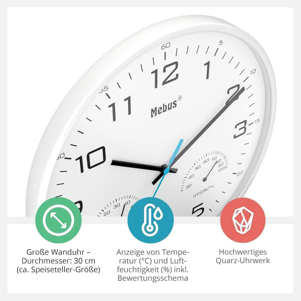 Đồng hồ treo tường kèm đo nhiệt độ và độ ẩm Mebus 06992 - hàng Đức