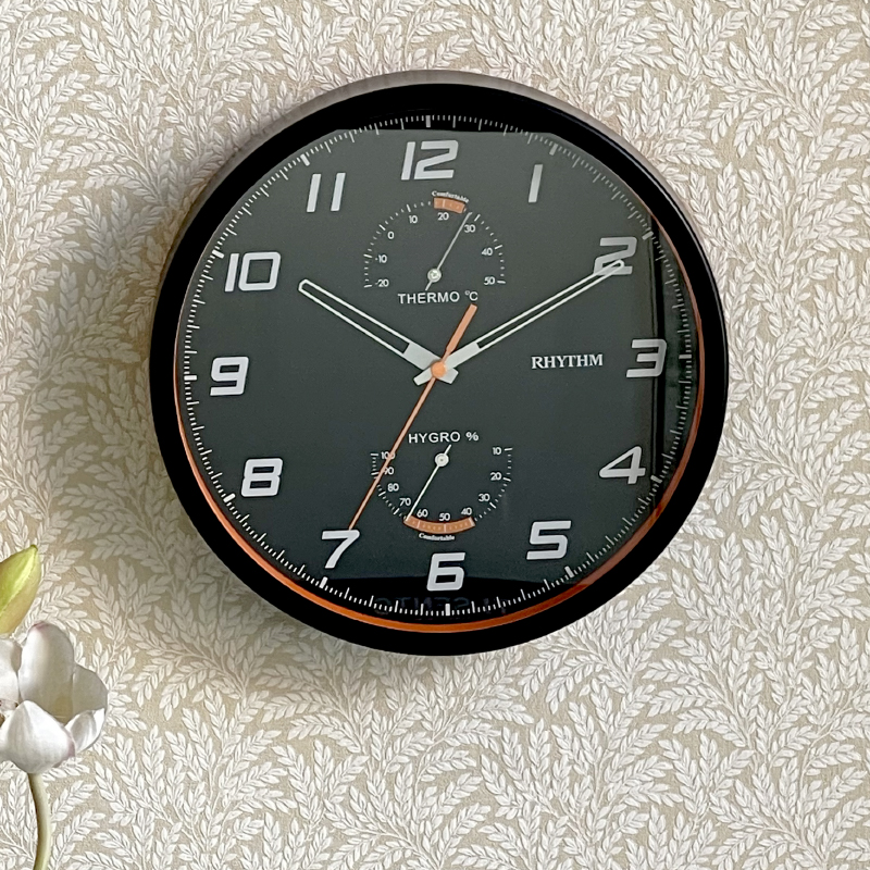 Mua tại TiktokĐồng hồ treo tường Rhythm CFG722NR02 , dùng pin (AAx1), vỏ nhựa cao cấp màu đen, Kích thước 26.5 x 4.2cm, trọng lượng 760g. 2 đồng hồ nhỏ hiển thị nhiệt độ và độ ẩm môi trường. Máy kim trôi chạy cực êm, chính xác, bền bỉ.
