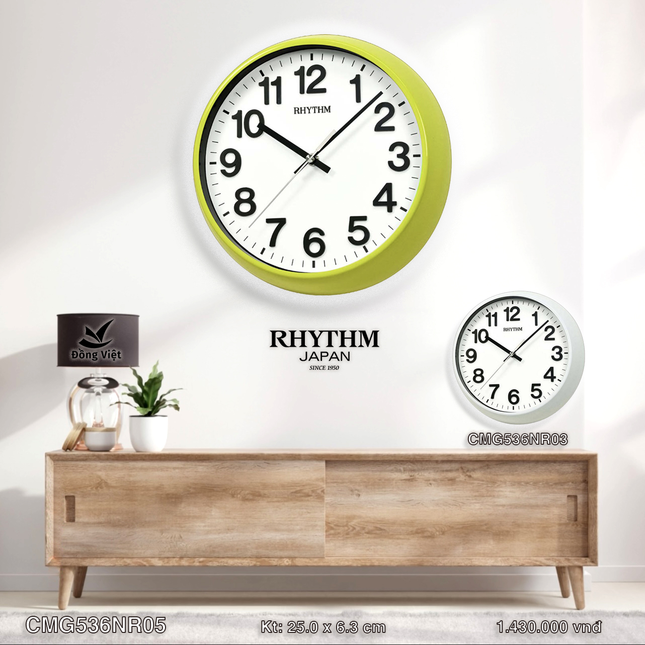 ✨Đồng hồ treo tường Nhật Bản RHYTHM CMG536NR05, Kt 25.0 x 6.3cm, 640g, Vỏ Nhựa