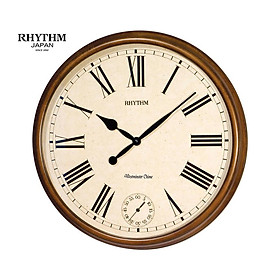 Đồng hồ treo tường Nhật Bản Rhythm CMG876NR18, dùng pin (AA x 1), vỏ nhựa màu vàng / kết hợp mạ vàng sang trọng. Kích thước 31.5 x 4.5cm, trọng lượng 625g. Máy kim trôi
