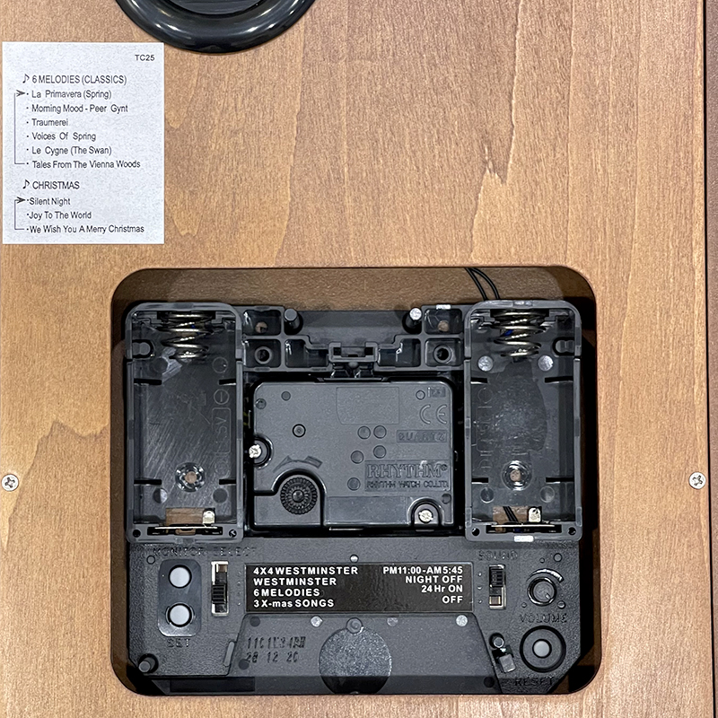 Mua tại TiktokĐồng hồ treo tường Nhật Bản Rhythm CMH721CR06, dùng pin (C x 2, AA x 1), vỏ gỗ màu nâu Kích thước 50.0 x 9.0cm, trọng lượng 3.35kg. Âm thanh nổi SIP ( Sound In Palace ) đặc sắc của Rhythm vang, ngân với 4 chế độ nhạc : 6 giai điệu nhạc / 3 bản giáng sinh / Nhạc chuông nhà thờ Westminster, gõ điểm giờ / 4×4 nhạc nhà thờ Westminster 15 phút, 30 phút, 45 phút dạo nhạc. Tự động ngưng phát nhạc ban đêm từ 11 giờ đêm đến 5:45 sáng. Có núm chỉnh âm lượng tiện lợi.