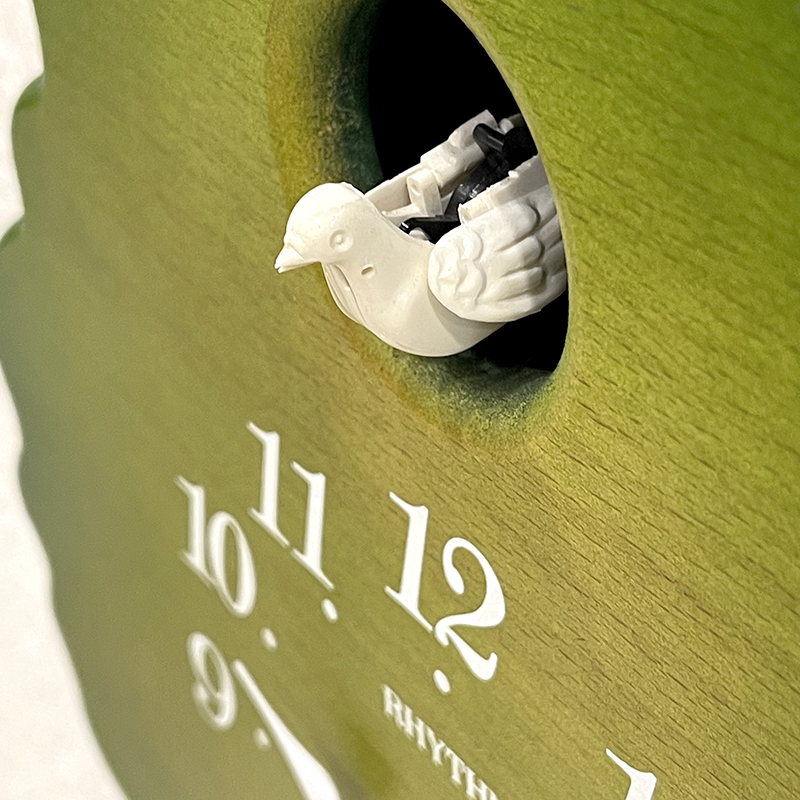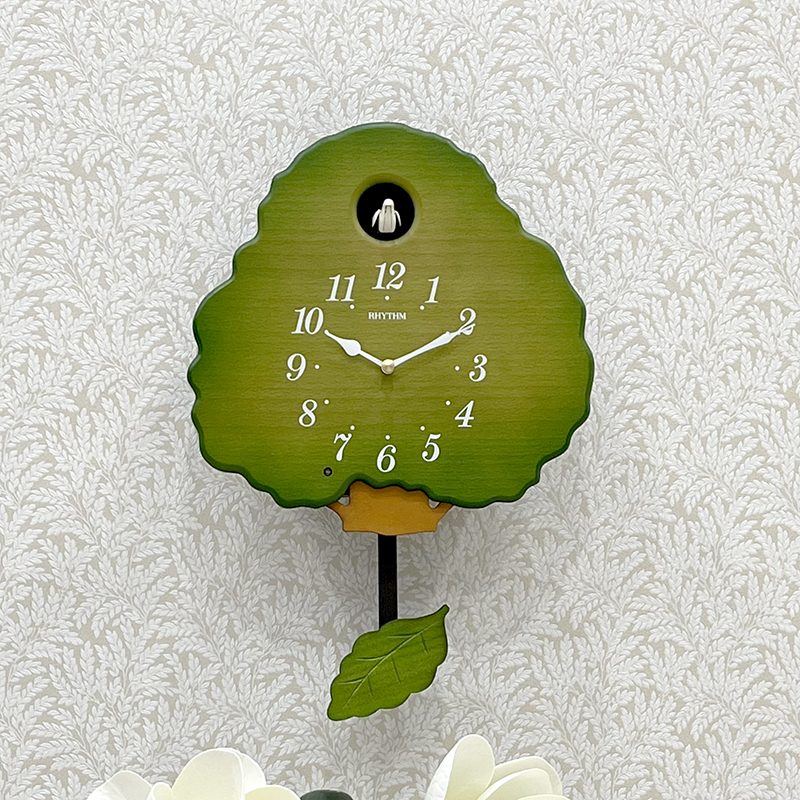 Mua tại TiktokĐồng hồ treo tường Nhật Bản Rhythm Cuckoo 4MJ413RH05, dùng 2 pin ( Cx2), vỏ gỗ chống mối mọt sơn màu xanh lá, Kích thước 29.4 x 43.6 x 9.7cm, trọng lượng 1kg. Sử dụng công nghệ hộp hơi độc quyền của Rhythm để thổi hơi tạo tiếng chim cuckoo. Mỗi đầu giờ cửa sổ mở, chú chim nhỏ nhảy ra hót cuckoo điểm giờ thật sinh động.