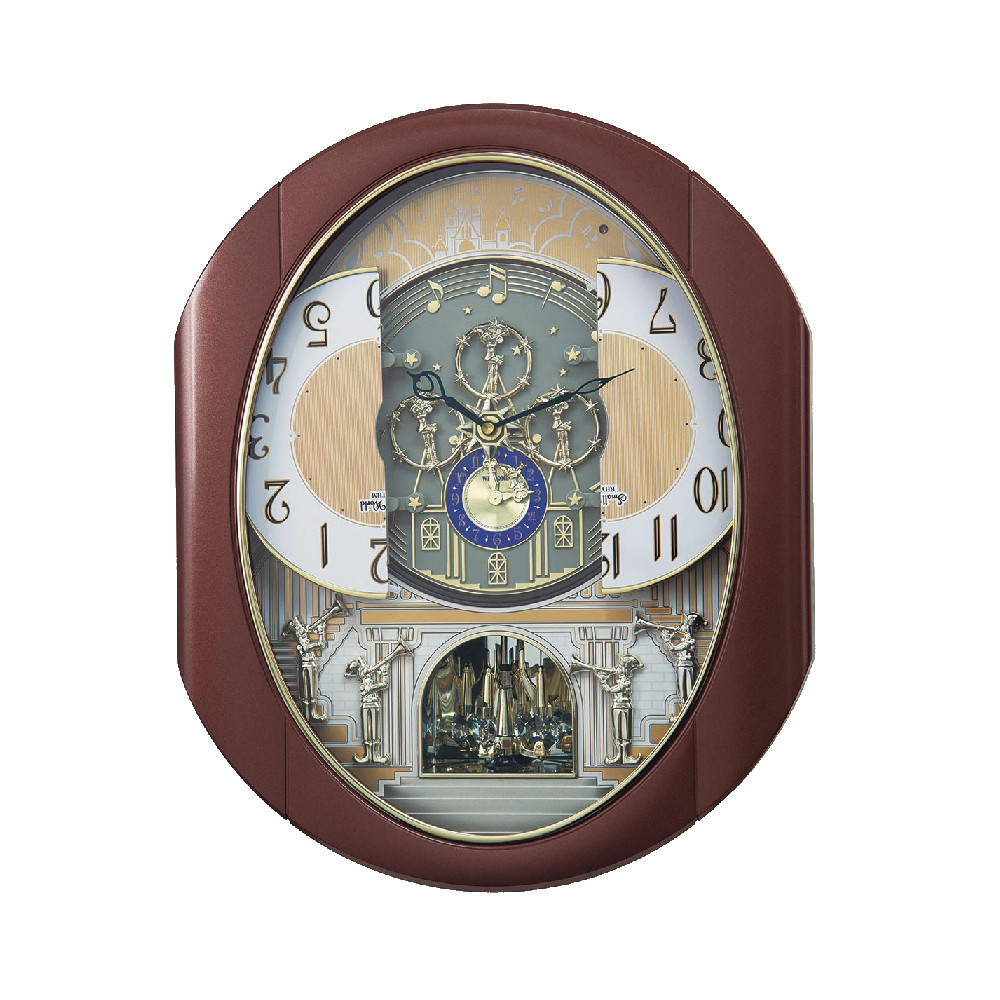Mua tại TiktokĐồng hồ Rhythm Magic Motion 4MH439WU06, sử dụng 2 pin D. Vỏ nhựa, Kích thước 38.4 × 47.0 × 13.9cm, nặng 3.30kg, Âm thanh nỏi thính phòng SIP ( Sound In Place ) với 24 bản nhạc, 6 bản giáng sinh. Mắt cảm ứng ánh sáng tự động không phát nhạc khi không có ánh sáng . Mỗi đầu giờ nhạc trỗi lên, mặt số mở ra để lộ các bánh răng xoay uyển chuyển nhịp nhàng kết hợp với quả lắc cẩn đá pha lê xoay tròn tạo nên chuyển động vui tươi, phá tan tỉnh lặng, đem lại vượng khí cho không gian gia đình. Núm chỉnh âm lượng tiện lợi.