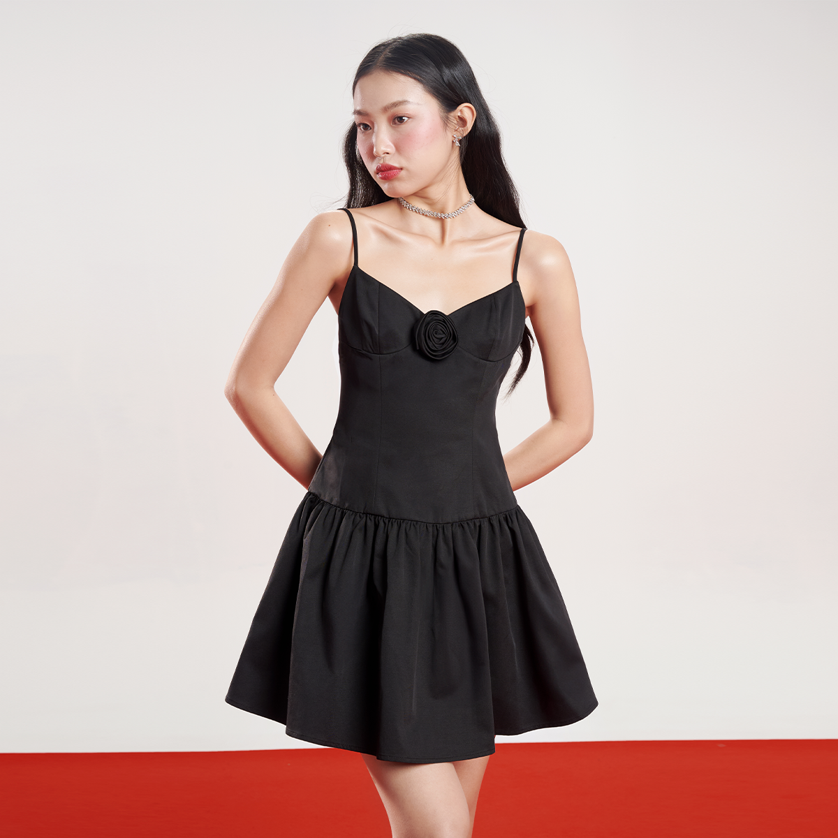 ✨DOTTIE - Đầm xòe 2 dây đính hoa - Đen - D0589