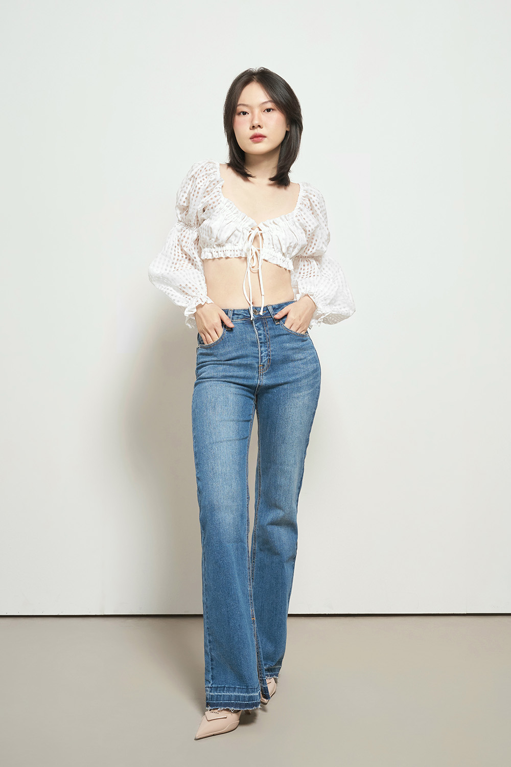 Mô tả sản phẩm - Quần jean ống rộng sẽ giúp chiều cao của bạn được “ăn gian” đáng kể với hiệu ứng kéo dài chân và che khuyết điểm đặc trưng của kiểu quần