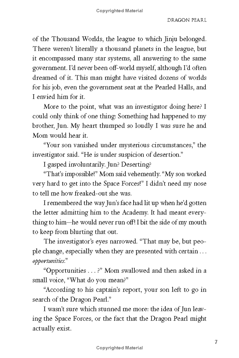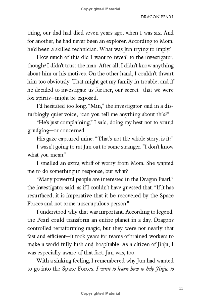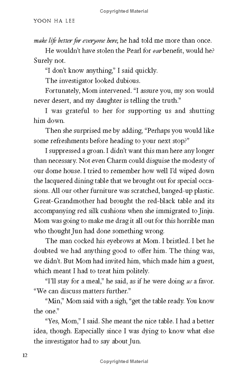 Min feels hemmed in by the household rules and resents the endless chores, the cousins who crowd her, and the aunties who judge her. She would like nothing more than to escape Jinju, her neglected, dust-ridden, and impoverished planet. She’s counting the days until she can follow her older brother, Jun, into the Space Forces and see more of the Thousand Worlds.