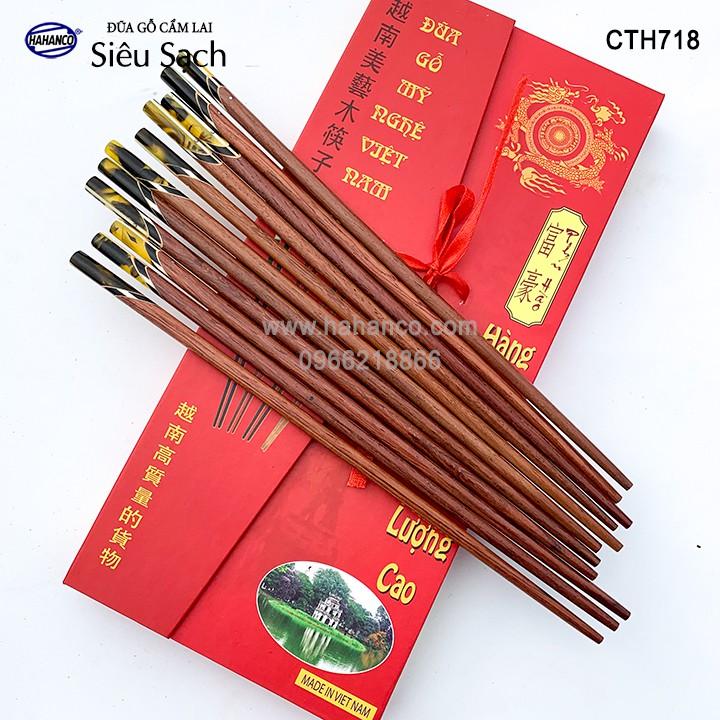 Đũa Tròn Gỗ Cẩm Lai Kháng Khuẩn Siêu Sạch HAHANCO Vân Gỗ Đẹp (10 đôi) CTH701CT - LH: 077 212 8866
