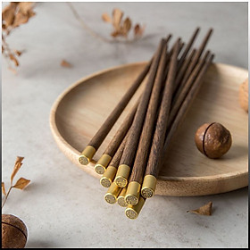 Được làm bằng chất liệu chống mốc chống mùi Đũa ko trơn thích hợp cho vui gắp mọi loại thước ăn Màu đen huyền bí đc bọc thêm một lớp mạ vàng trên đầu đũa