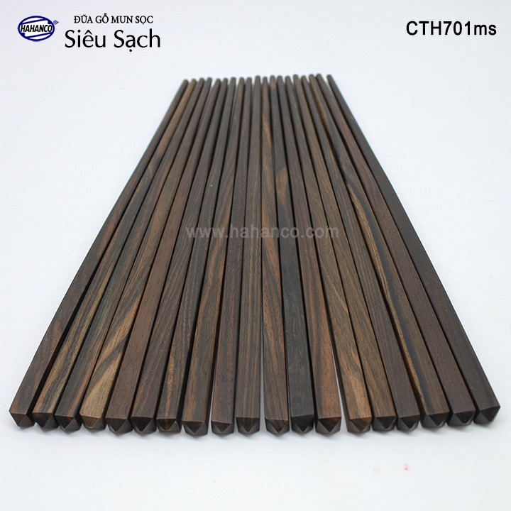 Lưu ý: Hiện nay hàng giả gỗ mun sọc rất nhiều, hàng giả thường được làm bằng gỗ tạp và ngâm hóa chất nhuộm màu rất độc hại. Để đảm bảo quyền lợi hãy chọn mua đúng đũa gỗ tự nhiên do Công Ty HAHANCO sản xuất.