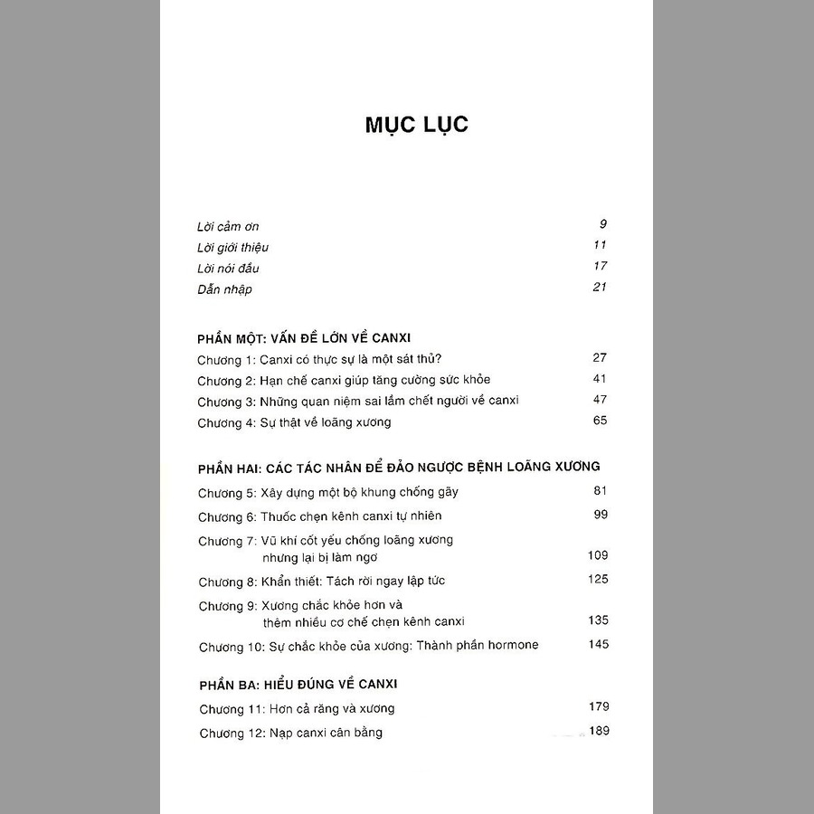Trong các trang tiếp theo, bạn sẽ gặp bằng chứng thực sự đáng kinh ngạc cho thấy tính độc hại của tình trạng thừa canxi vốn tồn tại ở hầu hết người lớn tuổi hiện nay. Bạn sẽ biết tại sao canxi bổ sung không giúp trị chứng loãng xương, mà thực ra còn làm trầm trọng thêm tất cả các bệnh thoái hóa mạn tính đã biết. Bạn cũng sẽ học được các phương pháp mà bạn và bác sĩ của bạn có thể sử dụng để đạt được và duy trì mức dinh dưỡng tối ưu nhằm đối phó với chứng loãng xương cũng như nhiều loại bệnh khác. Nếu được điều trị đúng cách, chứng loãng xương và hầu hết các bệnh hiện được coi là hầu như không thể đảo ngược đều có thể được cải thiện đáng kể.