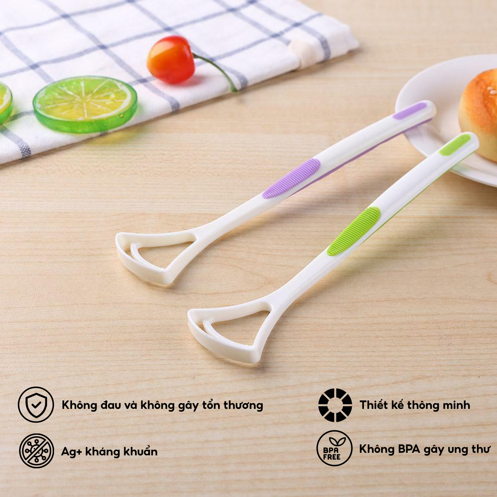 - Cạo lưỡi nhựa cao cấp giảm thiểu rủi ro bị chảy máu lưỡi khi vệ sinh như cạo lưỡi kim loại vốn cứng và sắc-
