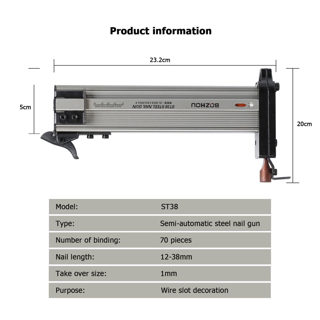 Mua tại TiktokMô hình: Máy đóng đinh bằng tay ST18 Kiểu: máy đóng đinh thép bán tự động Số lượng ràng buộc: 100 miếng Chiều dài móng: 12-18mm Tiếp quản kích thước: 8mm Chiều dài: 207mm Chiều dài dụng cụ: 207cm Mô hình: máy đóng đinh tự động bật lại ST18B Kiểu: máy đóng đinh thép bán tự động Số lượng ràng buộc: 100 miếng Chiều dài móng: 10-30mm Tiếp quản kích thước: 8mm Chiều dài: 207mm Mô hình: ST38 Kiểu: máy đóng đinh thép bán tự động Số lượng ràng buộc: 70 miếng Chiều dài móng: 12-38mm Tiếp quản kích thước: 1mm