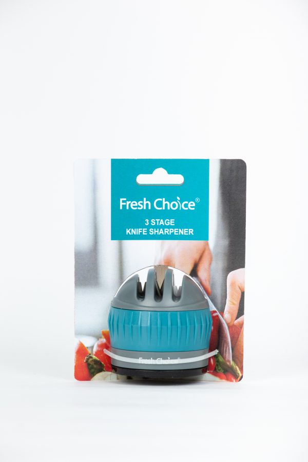 Dụng cụ mài dao Fresh Choice được thiết kế nhỏ gọn và khá thông minh với cấu tạo 3 phần lưỡi mài: lưỡi kim cương mài thô và giúp cân bằng lại dao, lưỡi carbon mài sắc bén và lưỡi gốm cuối cùng để tinh chỉnh và hoàn thiện.