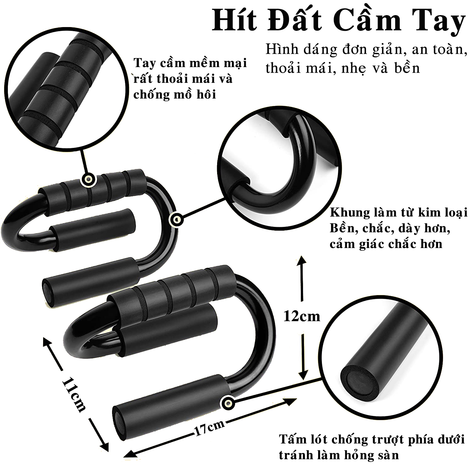 Dụng Cụ Tập Hít Đất Cầm Tay Thép Cứng Cao Cấp – Đen - mi02 - Dụng Cụ Chống Đẩy miDoctor (Đường Kính Khung 18MM) Mô tả chi tiết sản phẩm - Dụng Cụ Hít