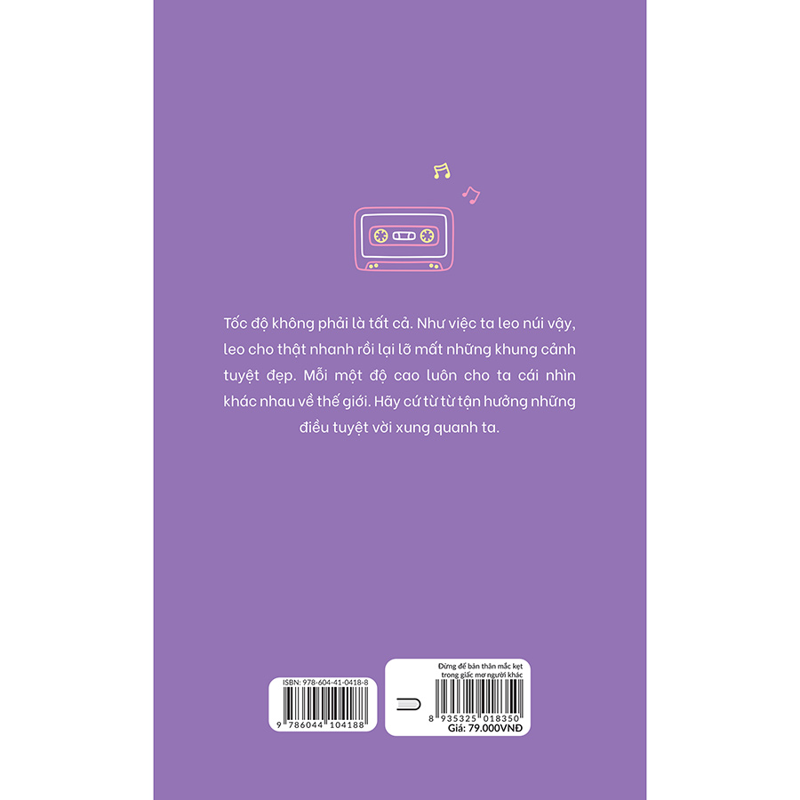 Bởi vậy, nếu một ngày bạn cảm thấy con đường đang đi sao chẳng bằng phẳng, tự ti vì bản thân quá tầm thường hay nghi ngờ đam mê mình ôm ấp, cũng đừng lo sợ. Hãy để cuốn sách “ĐỪNG ĐỂ BẢN TH N MẮC KẸT TRONG GIẤC MƠ NGƯỜI KHÁC” nuôi dưỡng sự kiên định theo đuổi ước mơ trong bạn.