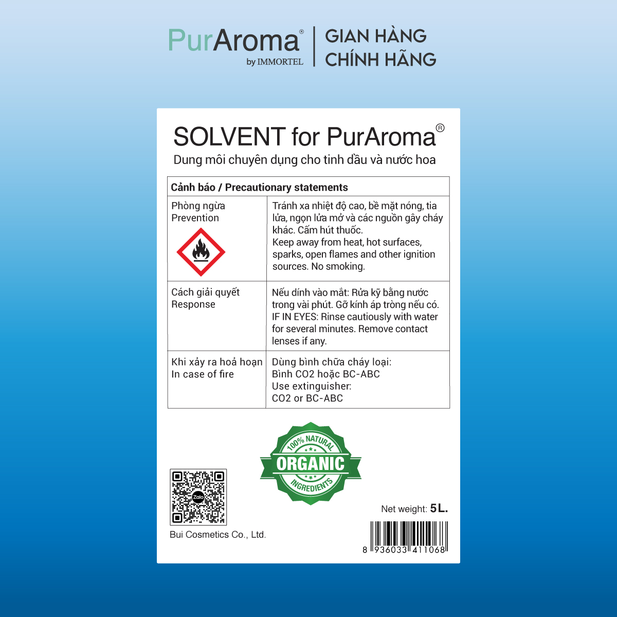 Mua tại TiktokDung Môi Chính Hãng PurAroma - Chuyên Dụng Cho Tinh Dầu Và Nước Hoa “Người bạn đồng hành” đáng tin cậy của các start-up, doanh nghiệp SME, thương hiệu cao cấp. Đây là lựa chọn phù hợp cho những ai yêu thích hương thơm tự nhiên, an toàn cho sức khoẻ. Với công thức cải tiến từ Pháp, sản phẩm giúp khuếch tán tinh dầu hiệu quả, lưu hương lâu và không gây khô da. Dung môi này có thể hòa tan hầu hết tinh dầu, kể cả tinh dầu thiên nhiên và tinh dầu nước hoa, tạo ra hỗn hợp đồng nhất mà không làm biến đổi mùi hương gốc. Dung môi sinh học có nguồn gốc 100% hữu cơ. Sản phẩm này thân thiện với môi trường, gia đình và thú cưng.
