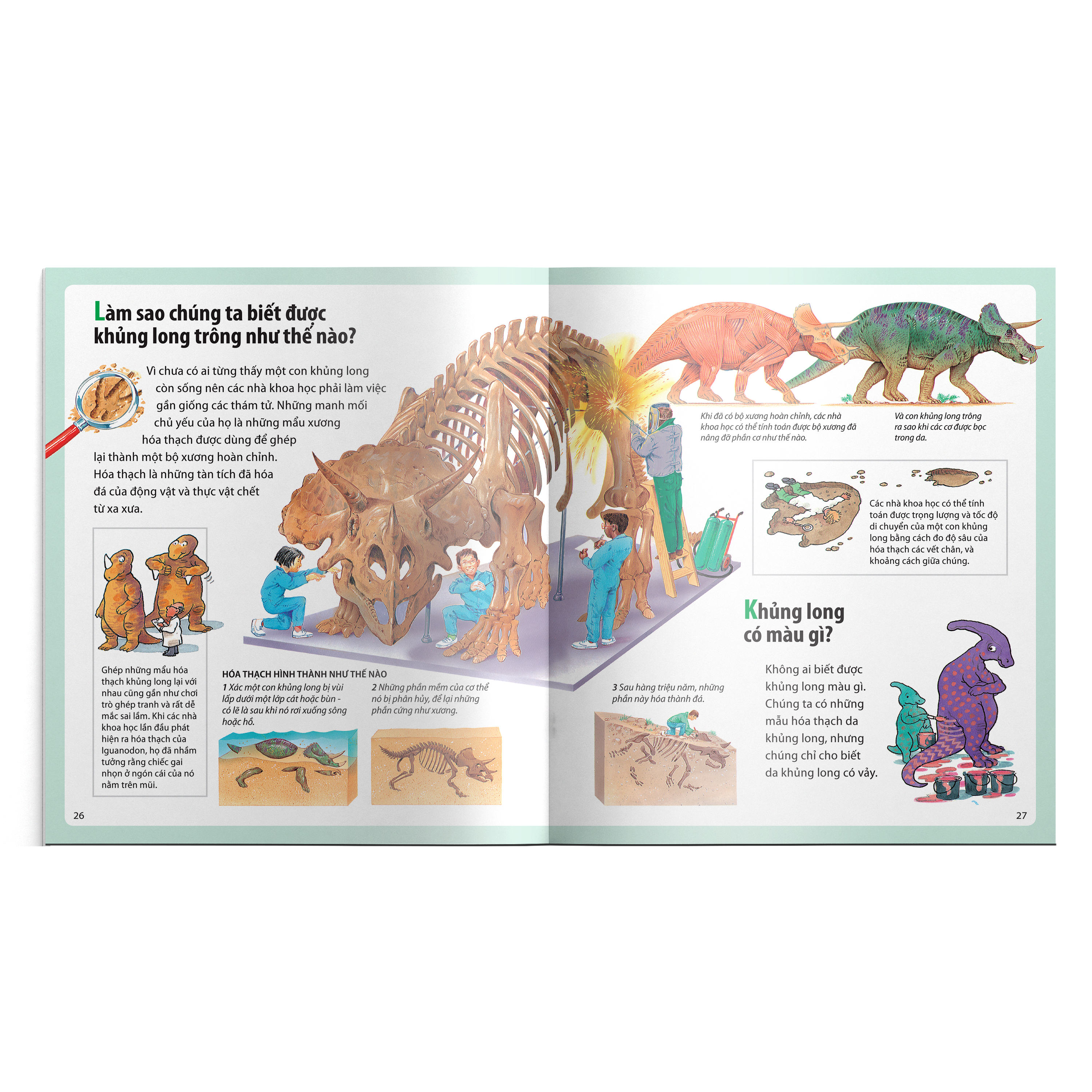 Tất cả trẻ đều có bản tính tò mò tự nhiên và mong muốn khám phá được thế giới xung quanh. Vì vậy, để đáp ứng nhu cầu muốn tìm hiểu về khoa học, về thế giới tự nhiên của các bé, cha mẹ có thể cung cấp cho bé thật nhiều thông tin thông qua hoạt động đọc sách. Và bộ sách “Nhà thám hiểm nhí” có rất nhiều thông tin thú vị chờ các bé khám phá. Bộ sách gồm 2 cuốn: Khủng long siêu ngầu và Vũ trụ kì diệu. Cuốn 1: Khủng long siêu ngầu Đối với các độc giả nhí vẫn luôn tò mò về thế giới đầy bí ẩn của những chú khủng long, cuốn sách thú vị này sẽ không làm các bé thất vọng. Cuốn sách giới thiệu mọi thứ từ khủng long sống trong giai đoạn nào, chúng trông như thế nào, chúng ăn gì đến vì sao khủng long lại tuyệt chủng. Phụ huynh hãy cùng bé mở sách và giải đáp những thắc mắc của con trẻ nào! Cuốn 2: Vũ trụ kì diệu Các độc giả nhí có thể khám phá những điều kì diệu của vũ trụ trong cuốn sách tuyệt vời này. Cuốn sách sẽ giới thiệu cho bé những thông tin quan trọng như các hành tinh, những ngôi sao, thám hiểm không gian và nhiều điều hấp dẫn khác nữa. Phụ huynh hãy cùng bé bước vào một thế giới bên ngoài Trái Đất nhé!