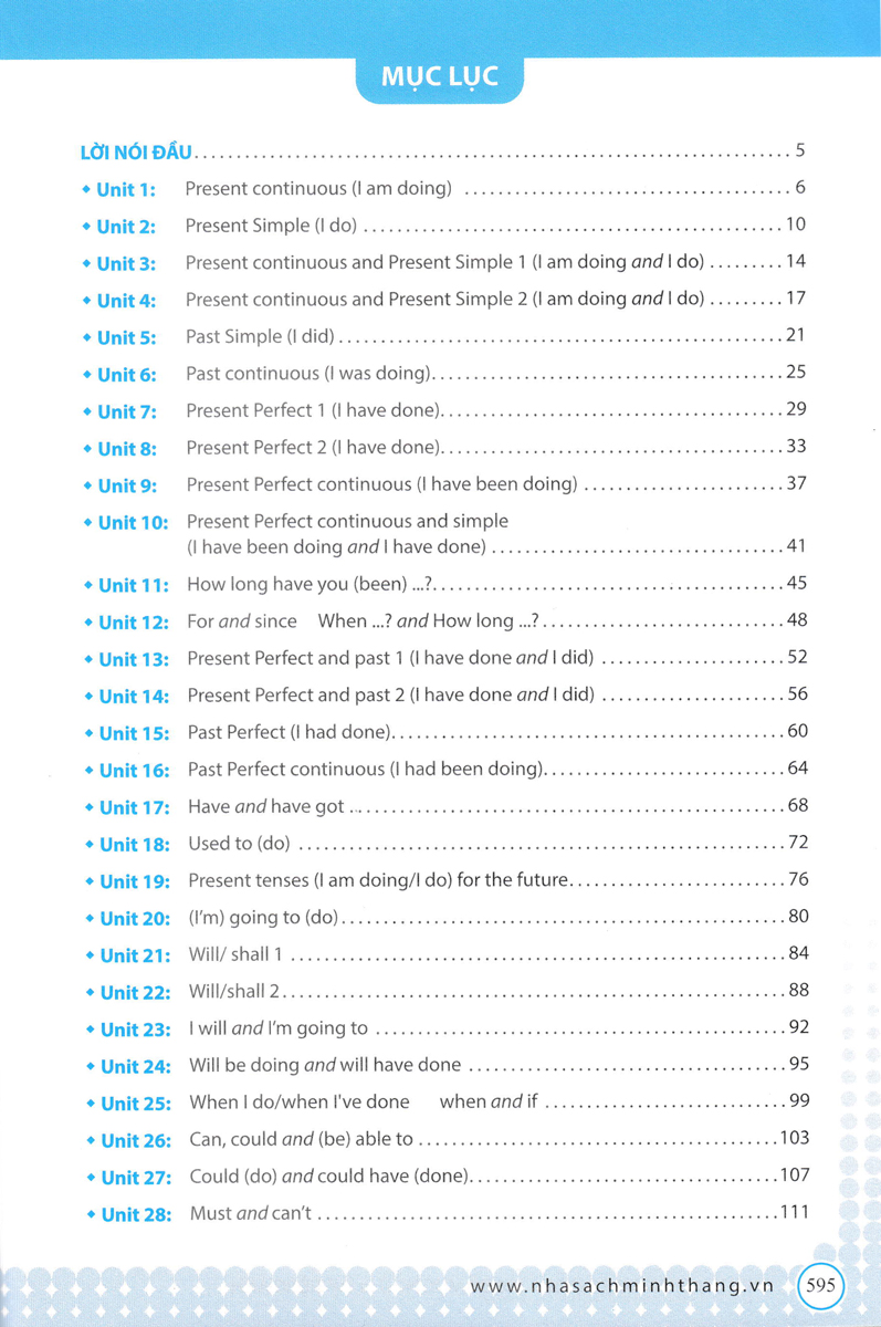 Quyển sách này mang đến một kế hoạch luyện tập hiệu quả giúp bạn nhanh chóng nắm vững kiến thức ngữ pháp tiếng Anh. Hãy học theo trình tự tất cả các chủ điểm ngữ