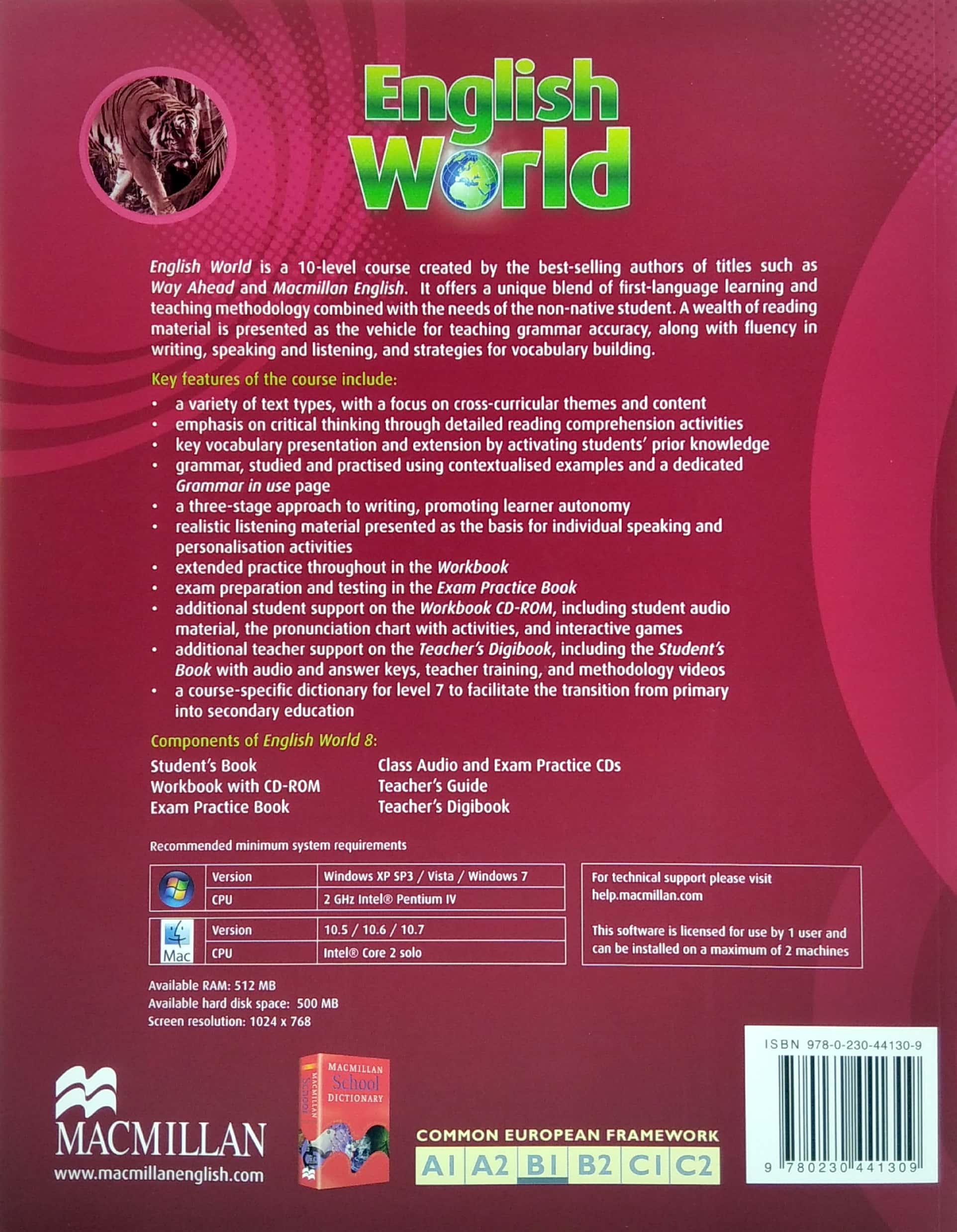 English World is a stunningly visual ten-level course which will take children through from primary to secondary. Written by the authors of best-sellers Way Ahead and Macmillan English, English World combines best practice methodology with innovative new features for the modern classroom. Active whole-class learning is supported by interactive activities on the WB CD-ROM. Thorough grammar and skills work is applied in natural contexts in the real world, through dialogues and cross-curricular material. English World provides a complete package for today's teachers and students. Key features Innovative Teacher's DVD-ROM with teaching methodology videos, teacher training videos and interviews with the course authors as well as the complete digitised Student's Book with Answer Keys, accessible audio and zoomable activities Informative, cross-curricular and cross-cultural content means that students learn about the world through English The stories, topics and projects promote social values and citizenship Systematic skills support and extension in the Workbook helps students develop learning strategies Level 7 has a specially written Dictionary designed to ease the transition from primary to secondary