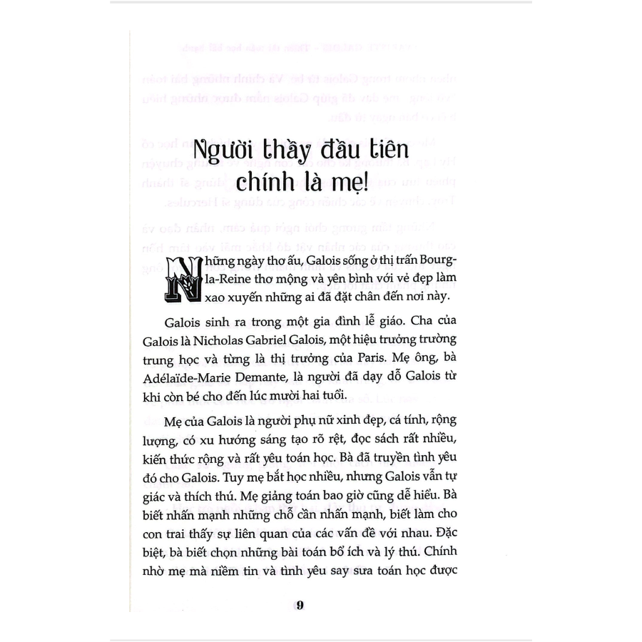 Từ câu chuyện cuộc đời Évariste Galois, bạn đọc sẽ rút ra được những bài học bổ ích về nhân sinh quan, giá trị quan, thế giới quan, về những quan niệm giáo dục, về cuộc sống, về bài học thành công quý giá trên đường đời.
