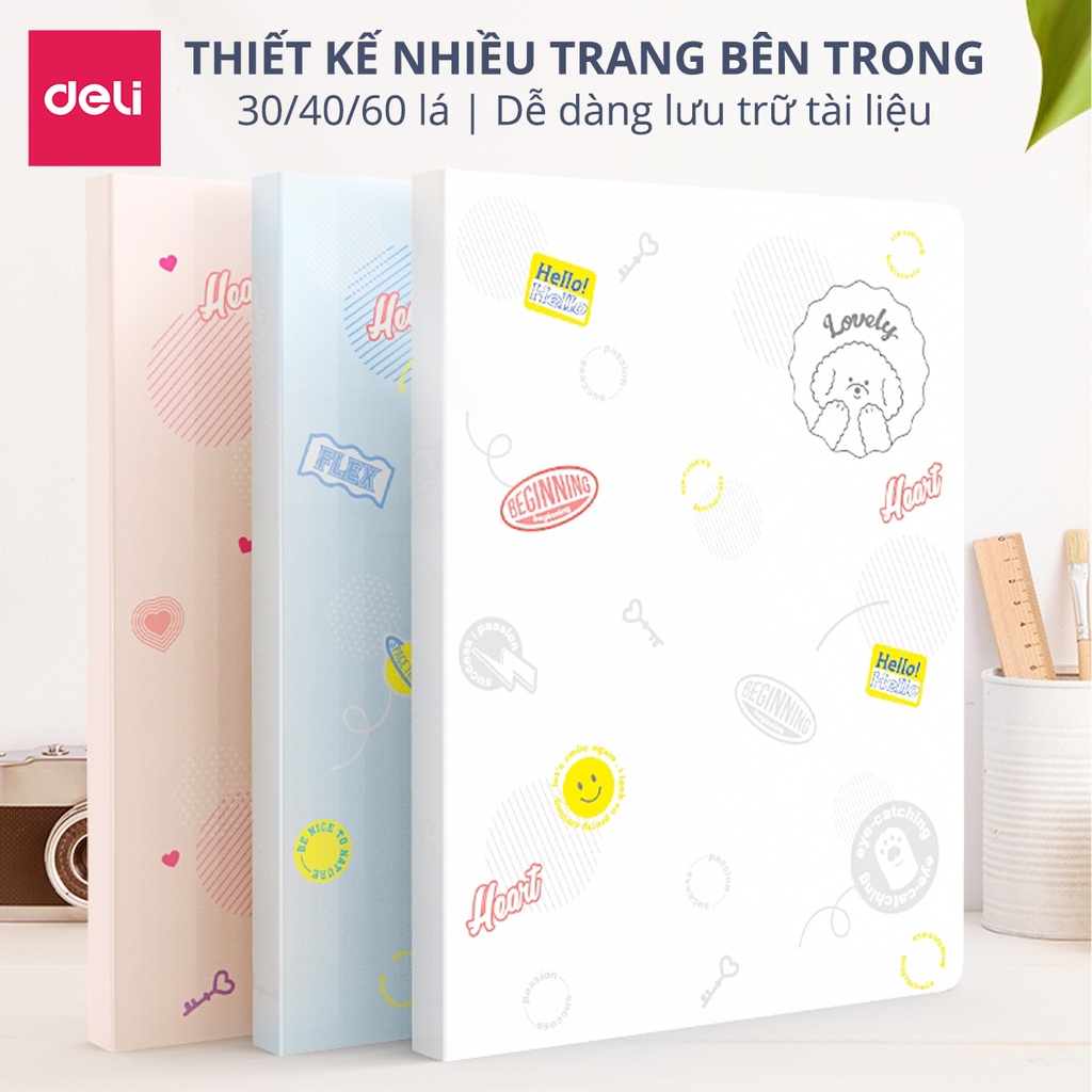 - File lá 30 lá Deli 5163 Giao màu ngẫu nhiên đựng tài liệu hồ sơ lưu trữ giấy tờ cỡ A4 là vật dụng thiết yếu trong văn phòng, được xem là giải pháp