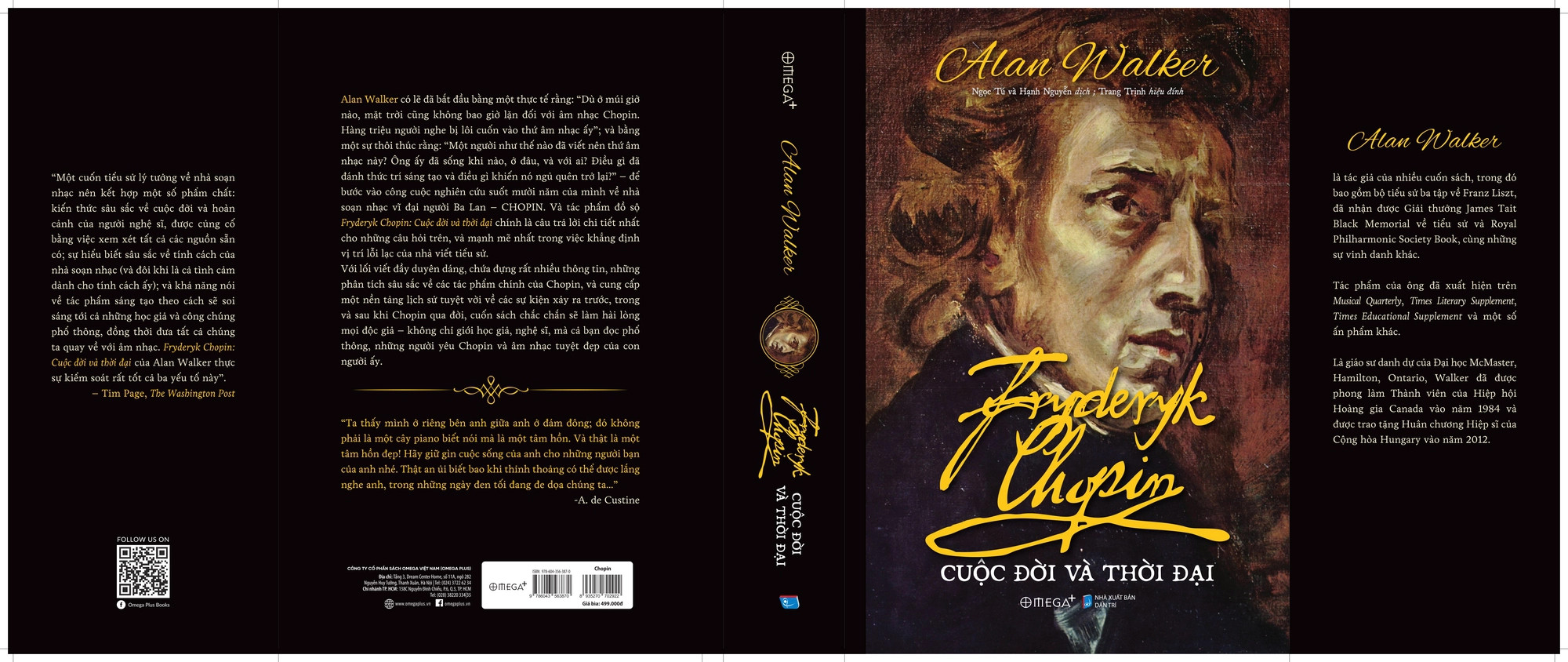 - Điểm nhấn: kết quả của trên 10 năm nghiên cứu ĐÁNH GIÁ/NHẬN XÉT CỦA CHUYÊN GIA Một cuốn tiểu sử lý tưởng về một nhà soạn nhạc chứa đựng những phẩm chất: kiến thức sâu sắc về cuộc đời và hoàn cảnh của người nghệ sĩ, được củng cố bằng việc khảo sát lại tất cả các nguồn sẵn có; sự hiểu biết sâu sắc về tính cách của nhà soạn nhạc (và đôi khi có thể là những tình cảm dành cho tính cách ấy); và khả năng diễn đạt công việc sáng tạo theo cách sẽ gây ấn tượng với cả học giả và công chúng, đồng thời đưa tất cả chúng ta trở lại với âm nhạc. Fryderyk Chopin: A Life and Times của Alan Walker thực sự đã đạt được những điều trên. Đây hiện là cuốn tiểu sử hay nhất của Chopin - tỉ mỉ, uyên bác và được kể theo cách hay nhất. " -- Tim Page, The Washington Post TRÍCH ĐOẠN HAY Tôi muốn khẳng định một điều dù không thể chứng minh nhưng tôi chắc chắn đúng. Trong bán kính năm mươi km từ nơi tôi đang viết Lời mở đầu này, một người nào đó ở đâu đó đang chơi hoặc nghe nhạc Chopin. Nó cũng không phụ thuộc vào vị trí bàn viết của tôi — hiện được đặt gần Toronto. Chuyển nó đến New York, London, Berlin, Vienna, Moscow hoặc Bắc Kinh, và điều khẳng định ấy vẫn sẽ đúng. Dù ở múi giờ nào, mặt trời cũng không bao giờ lặn đối với âm nhạc Chopin. Hàng triệu người nghe bị lôi cuốn vào nó. Các đài phát thanh trên khắp thế giới phát sóng các sáng tác của ông. Doanh số các bản thu âm nhạc Chopin vẫn giữ vững phong độ, ngay cả khi những nhà soạn nhạc khác mất đi sự ái mộ. “Độc tấu Chopin” càng ngày càng được yêu thích, một kịch mục cố định trong phòng hòa nhạc. Các cuộc thi Chopin liên tục xuất hiện trên toàn cầu. Cuối cùng, và đáng chú ý nhất, Chopin đã trở thành biểu tượng của một quốc gia. Ông là người con trai lỗi lạc nhất của Ba Lan. Có nhà soạn nhạc nào khác mà người ta có thể nói về bằng những điều tương tự? Bữa tối được phục vụ vào lúc 5 giờ chiều và sau khi kết thúc, thời gian buổi tối có thể được dành cho việc giải trí. Sand thường có khách khứa đến chơi và khi không khí sau bữa ăn trở nên đặc biệt thoải mái, không khó để thuyết phục Chopin chơi piano và thậm chí chọc cười khán giả với những màn bắt chước nổi tiếng của mình. Sau khi mê hoặc họ với màn biểu diễn piano, anh cố ý phá bỏ sự quyến rũ anh vừa tạo ra. Liếc qua gương, anh chỉnh lại cà vạt, làm rối mái tóc, làm vài điệu bộ tương ứng khiến khán giả phải bật cười với màn bắt chước của mình, theo như lời của Sand “một người Anh lạnh lùng, một người già lạc lõng, một quý bà Anh đa cảm hoặc một tay Do Thái hám lợi. Họ thuộc kiểu đáng thương nhưng hài hước và được thể hiện hoàn hảo đến nỗi mọi người bị thu hút vào màn đó của anh ấy mà không biết chán”. Chính Chopin là người bắt đầu truyền thống diễn kịch và kịch câm ở Nohant với những màn diễn được ứng biến và có đủ vai cho bất kỳ ai muốn tham gia. Các trò giải trí này cuối cùng đã truyền cảm hứng cho Maurice Sand lập nên Nhà hát múa rối Nohant, với dàn nhân vật được lấy ra từ các vở hài kịch ứng tác cũ (commedia del,l’arte) - trong số đó có Arlecchino, Pantalone, Il Dottore và Zanni. Việc sáng tác của anh ấy rất ngẫu hứng, kỳ diệu. Anh ấy có được những ý tưởng mà không phải tìm kiếm chúng, không cần dự đoán về chúng. Chúng đến trên cây đàn piano của anh, bất chợt, hoàn thiện, tuyệt mỹ hoặc ngân lên trong đầu khi anh đi dạo và anh phải chạy vội về, quăng mình vào cây đàn để bản thân lắng nghe chúng. Nhưng sau đó sẽ bắt đầu một quá trình lao động đau lòng hơn mọi thứ tôi đã từng chứng kiến. Đó là một chuỗi những nỗ lực để nắm bắt lại một số chi tiết nào đó của các chủ đề mà anh ấy vừa nghe trong sự bất lực và thiếu kiên nhẫn: những gì anh ấy hình dung về tổng thể được phân tích quá mức trên giấy và sự lo ngại việc ghi chép lại không đầy đủ (theo như ý anh ấy) đã ném anh vào sự tuyệt vọng. Anh giam mình trong phòng cả ngày, rên rỉ, đi lại, bẻ gãy bút, lặp lại hoặc thay đổi ô nhịp hàng trăm lần, liên tục viết ra rồi lại xoá đi và làm lại từ đầu vào ngày hôm sau với sự tỉ mỉ và kiên nhẫn kinh khủng. Anh mất sáu tuần cho một trang nhạc, chỉ để trở lại và viết những gì anh có trong bản nháp đầu tiên. THÔNG TIN THÊM Cuốn sách nhạc cổ điển của năm 2018 do tờ The Sunday Times (Vương quốc Anh) bình chọn. Một trong những Sách hay nhất năm 2018 do tờ The Economist bình chọn VỀ TÁC GIẢ Alan Walker Ông là Giáo sư danh dự tại Đại học McMaster từ năm 1995; Tiến sĩ Walker được phong làm Thành viên của Hiệp hội Hoàng gia Canada vào năm 1986 và được trao tặng Huân chương Hiệp sĩ của Cộng hòa Hungary vào năm 2012. Bài viết của ông đã xuất hiện trên các tạp chí như The Musical Quarterly, Times Literary Supplement và Times Ed