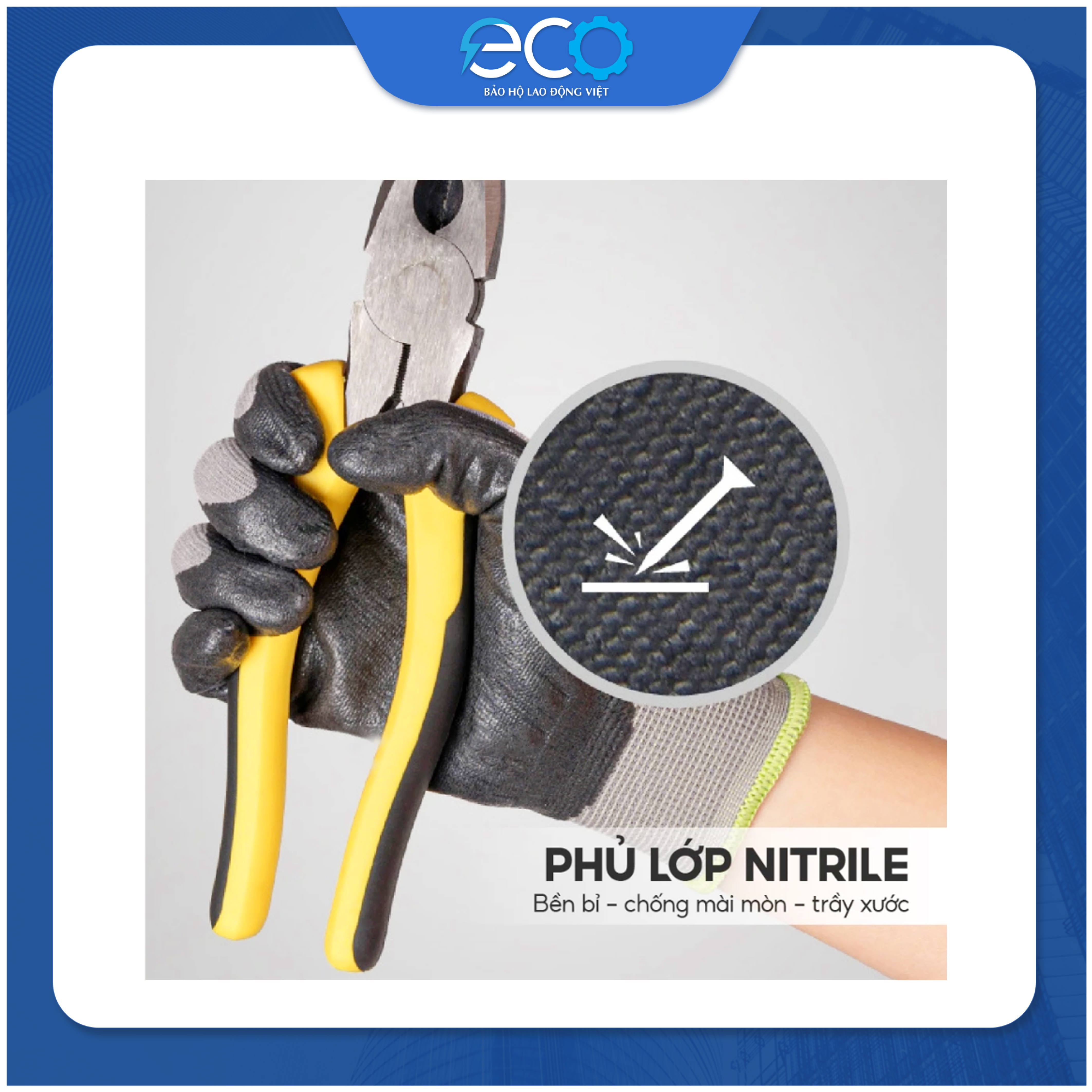 - Lớp phủ Nitrile: Lòng bàn tay được phủ lớp Nitrile, cung cấp độ bám tuyệt vời ngay cả trong điều kiện ẩm ướt hoặc dầu, đồng thời chống mài mòn và kéo dài tuổi thọ sản phẩm.