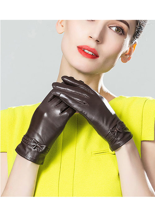 Găng tay nữ da cừu phối nơ BHY8714 Lót lông giữ ấm - Không bong nổ #Gangtaynu #Gangtaydanu