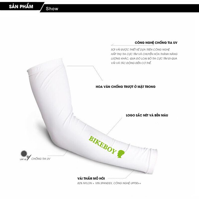Được thiết kế để chống nắng vào mùa hè nhất là khí hậu ở Việt Nam. Loại vải chống nắng này có chức năng bảo vệ hoàn toàn da tay bạn, ngăn chặn hiệu quả 95% tia cực tím, hệ số chống tia cực tím có giá trị UPF là 50+.