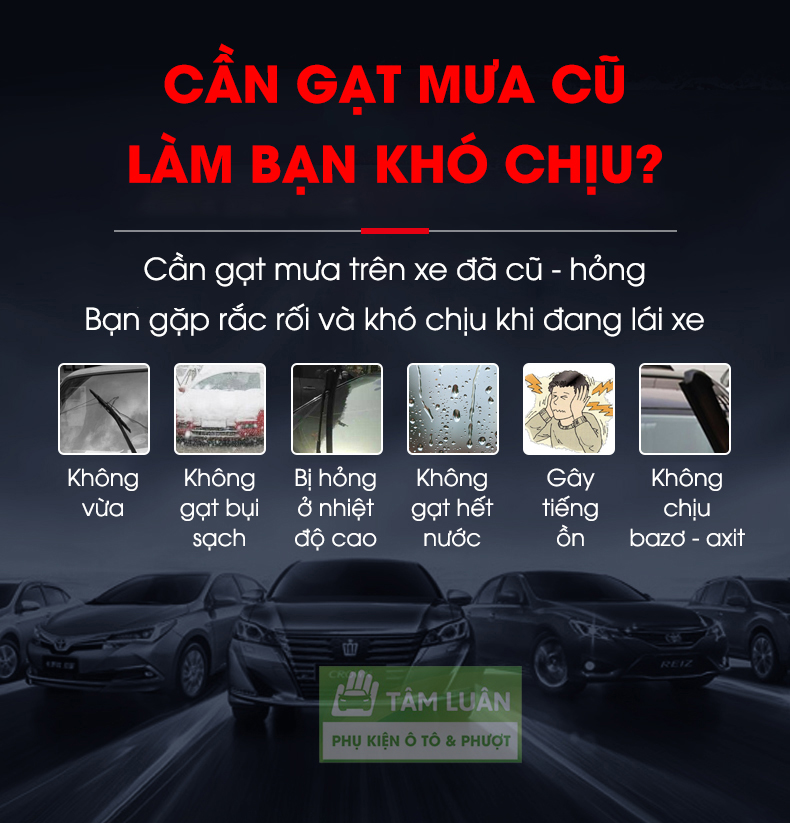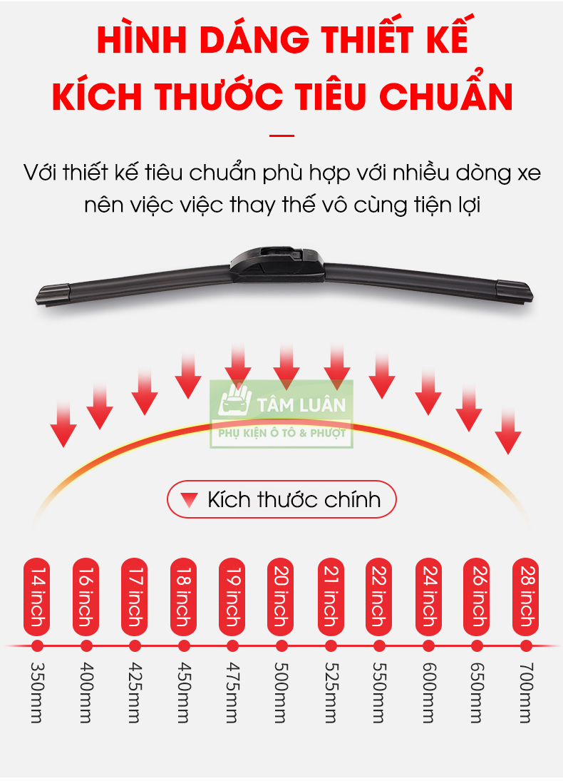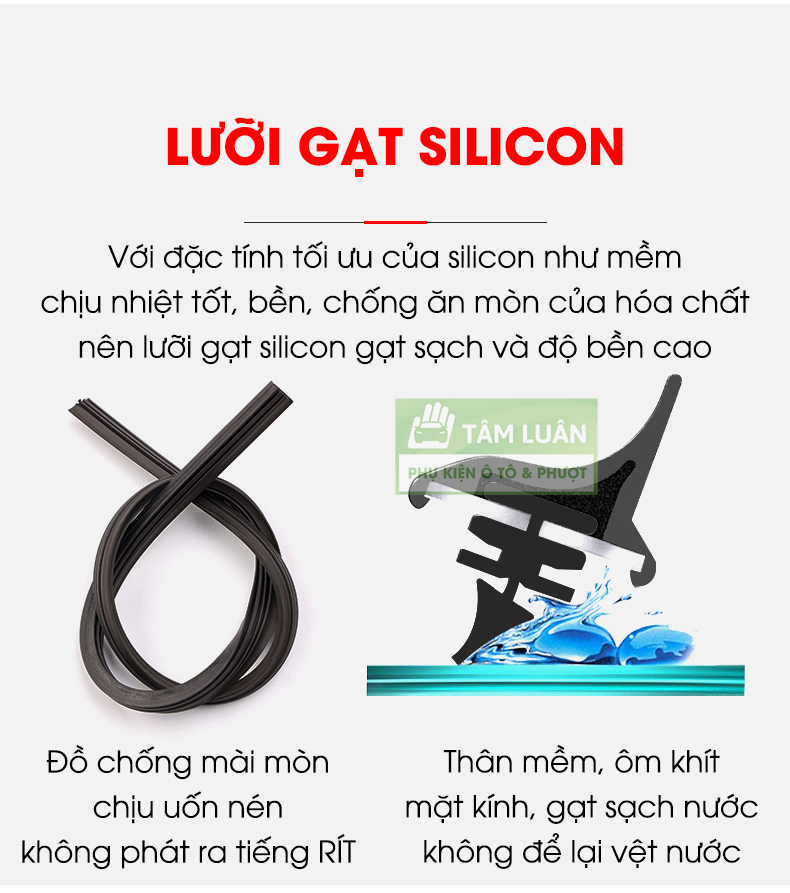 ✨Gạt mưa ô tô silicon Tâm Luân, KHÔNG XƯƠNG - Thân mềm, gạt sạch - không tiếng ồn - độ bền cao - không bị oxi hoá, độ bền lên đến 10 năm