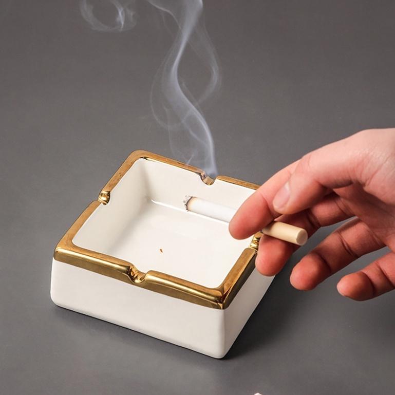 GẠT TÀN BẰNG GỐM SỨ HÌNH VUÔNG Thông tin sản phẩm: Chất liệu: gốm Được tráng men với màu sắc sang trọng lịch sự Vật liệu chính: Sản phẩm sử dụng sứ là vật liệu