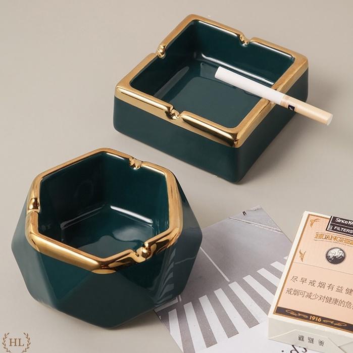 ✨Gạt Tàn Sứ | Gạt Tàn Hoàng Kim Chất Liệu Sứ Kẻ Viền Vàng Phong Cách Tân Cổ Điển NORDIC