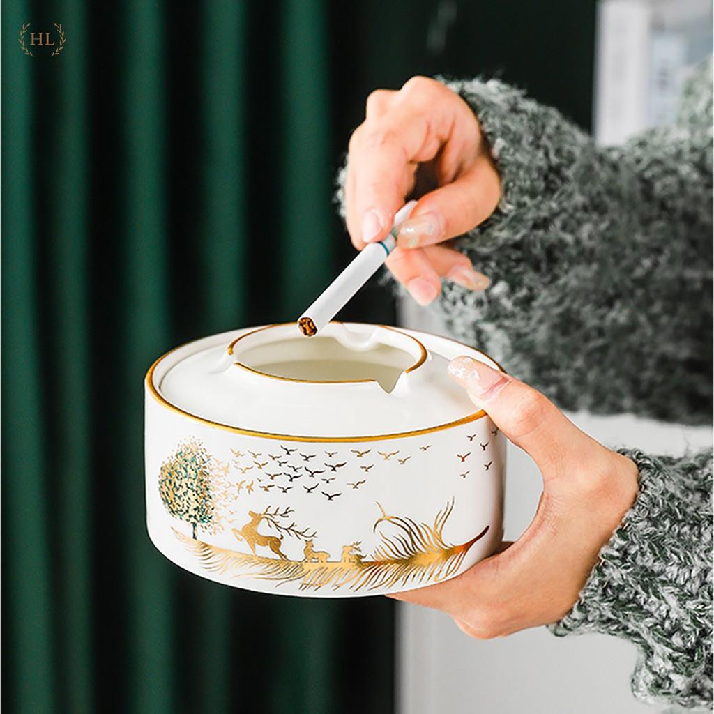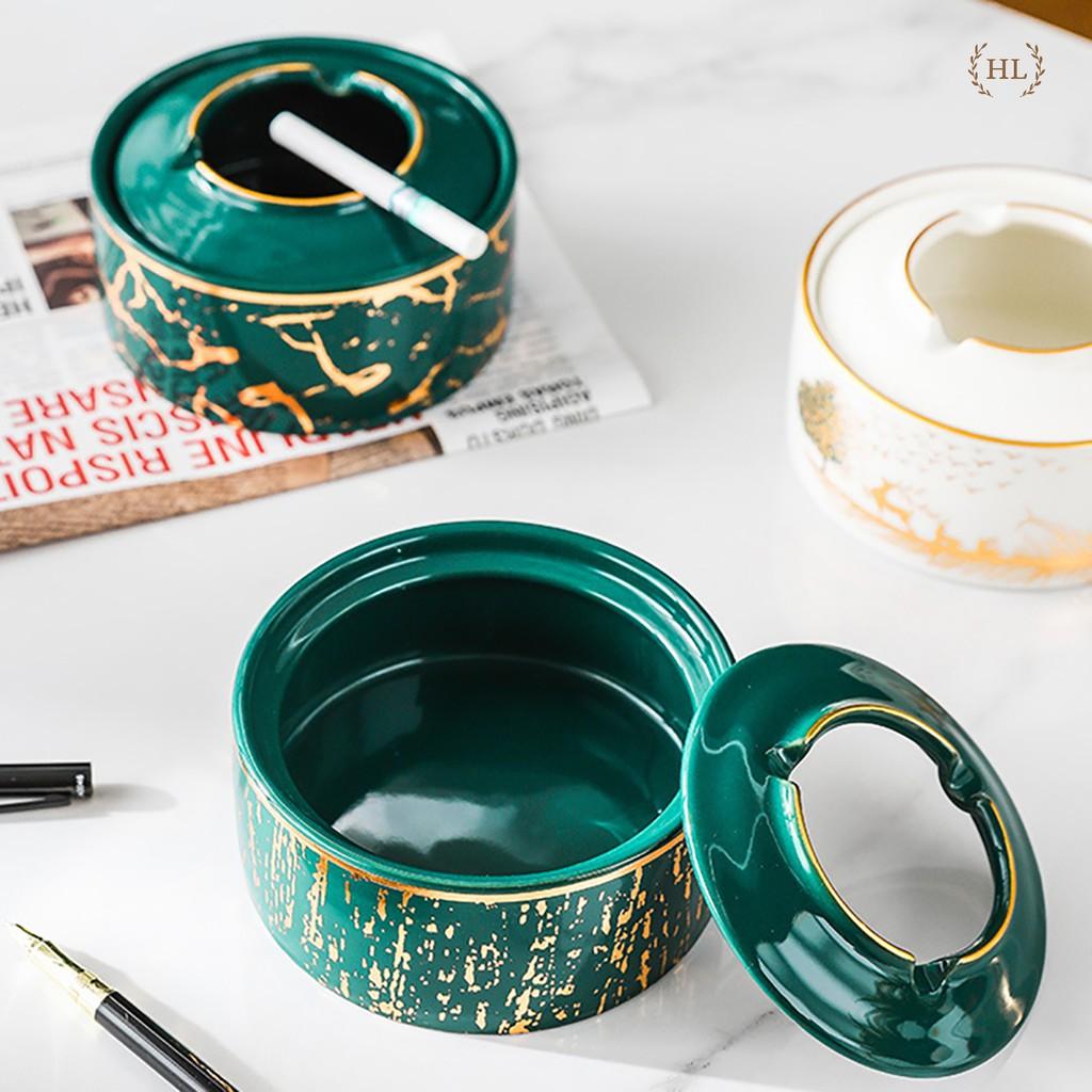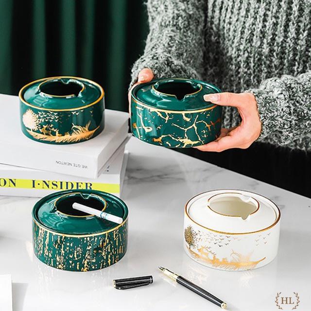 Gạt tàn gốm mạ vàng 18k cao cấp không thể thiếu trong không gian nhà bạn Kích thước: 15 x 15 x 15cm Mạ vàng 18k rất sang trọng và đẹp mắt Thiết kế nắp