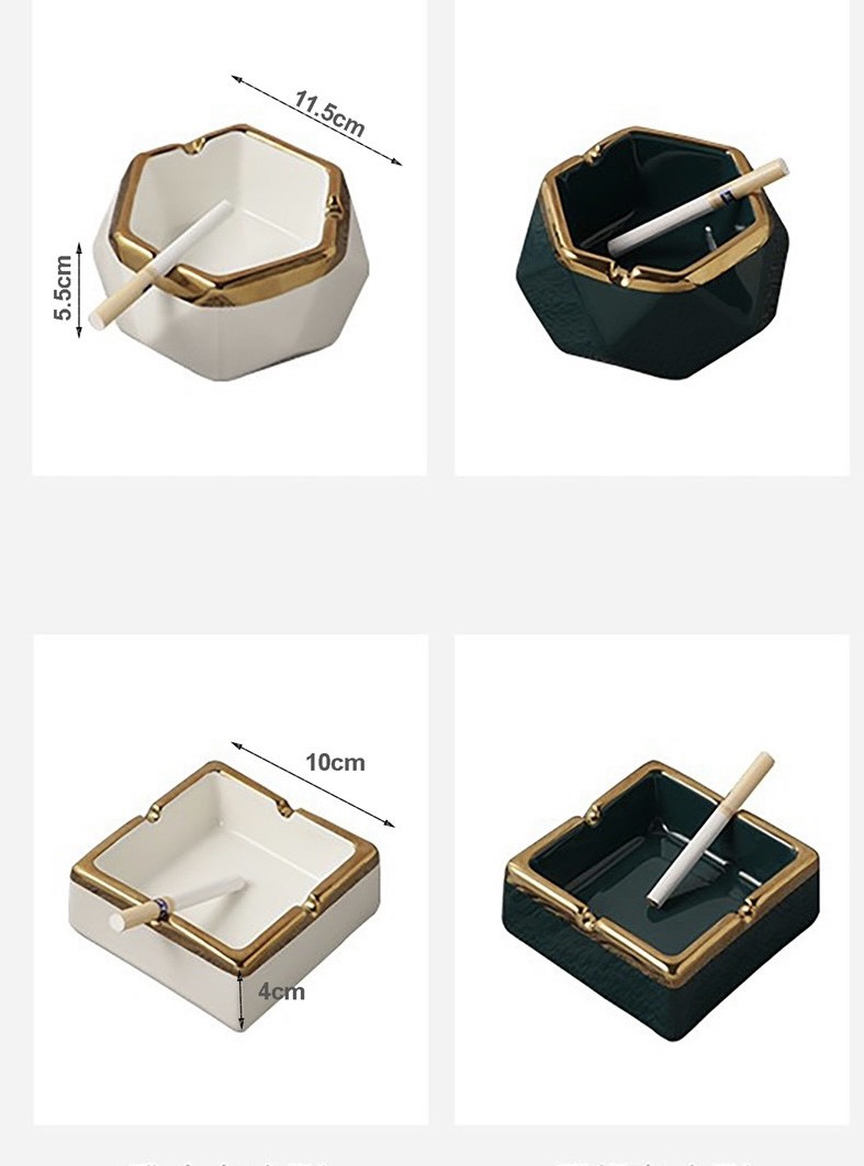 Gạt tàn gốm mạ vàng 18k cao cấp không thể thiếu trong không gian nhà bạn Kích thước: 15 x 15 x 15cm Mạ vàng 18k rất sang trọng và đẹp mắt Thiết kế nắp